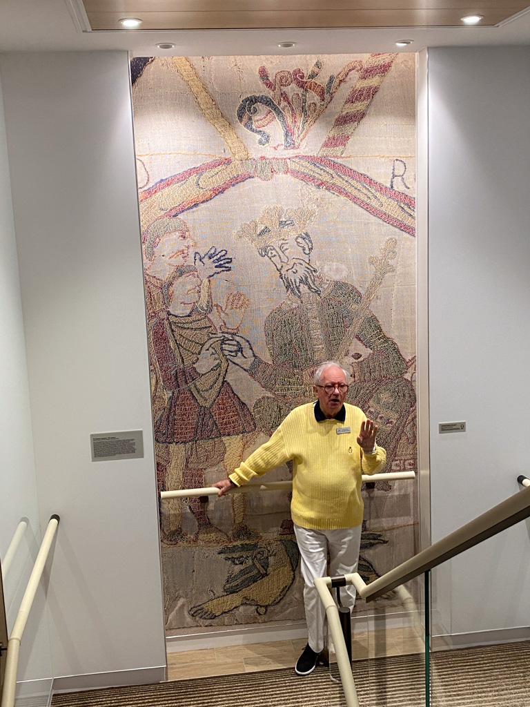 Viking Resident Historian Michael Hick describing the panels of the Bayeux Tapestry recreated in the aft and forward stairwells on all Viking Ocean ships.