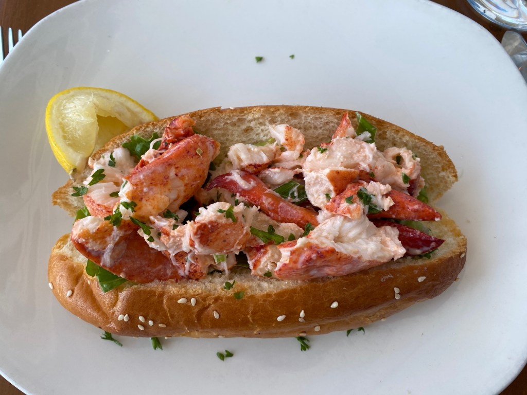 The timing for a photo stop at Mahone Bay with its iconic 3 Churches was perfect with the morning sun position. We drove through the quaint village of Mahone Bay and on to historic Lunenburg. Garry drove us around the harbor across from Lunenburg to the Bluenose Golf Club for a fantastic photo op of the picturesque town. I’m certain the Viking excursion bus did not wind through the golf course road to get this view! The Bluenose is the name of a famous fishing and racing schooner from 1921-1946 and has been on the Canadian dime since 1937. It has also appeared on Canadian stamps and Nova Scotia’s license plates. The Bluenose II currently operates out of Lunenburg as Nova Scotia’s sailing ambassador. We then went back to the main part of town as Garry pointed out highlights before dropping us off around 11am near the Fisheries Museum to have a walk around the colorful colonial town and grab some lunch. We were all eating lobster rolls (except Keith) on the porch of the Grand Banker Seafood Bar & Grill as Viking’s Lunenburg excursion bus along with Globus and Seabourne excursion busses arrived. On the way out of town, Garry stopped at a lobster pound. I was thinking no big deal as we’ve been to pounds in Maine and bought lobsters before. However, this one had some very special lobsters, including a blue lobster and Roger, a 14.5 pounder who is estimated to be 75-80 years old. He will be returned to the ocean next week. We were also allowed to see the refrigerated holding area where they store up to 25,000 pounds of lobsters per week. We were so glad we had our private tour today!