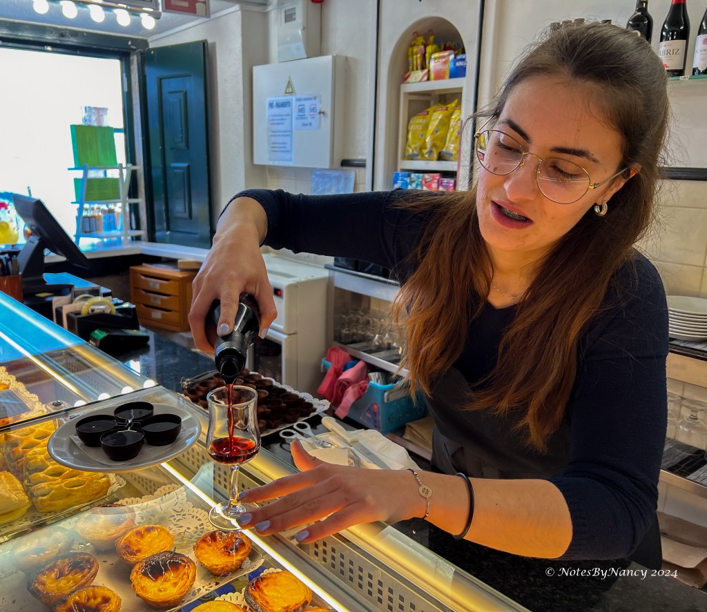 Óbidos is also known for producing another Portuguese delight, Ginjinha (aka Ginja), a cherry liquor. Traditionally, it is served in chocolate cups – so you know we had to try it! Yum! 90% of Ginja is consumed in Portugal, the other 10% is exported to the US. We checked online and both Total Wine and Spec’s carry it, so we didn’t have to buy any there to bring back with us. LOL! We did decide though that we had to stop in yet another bakery to pick up items for our breakfast the next morning at our Lisbon apartment.