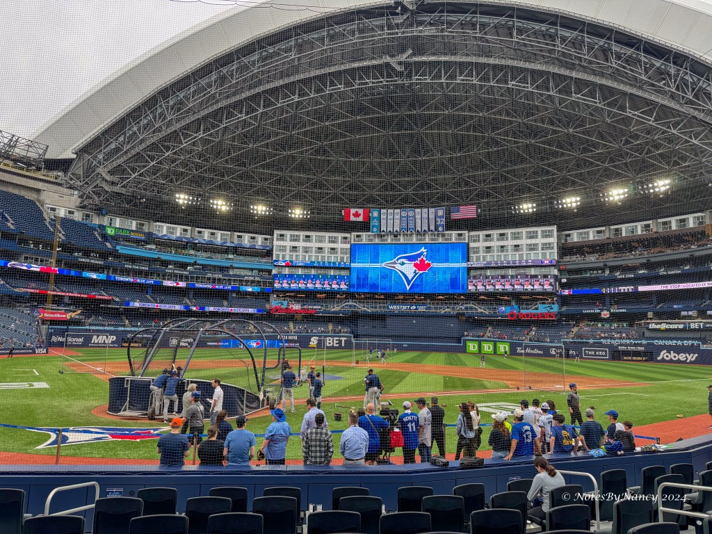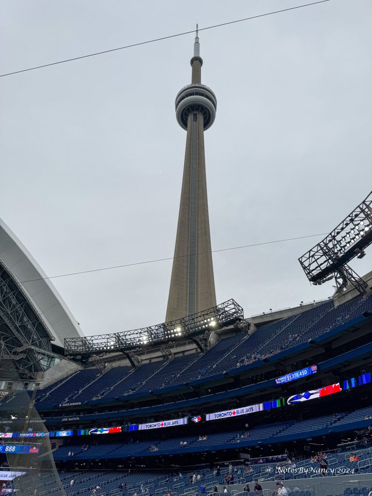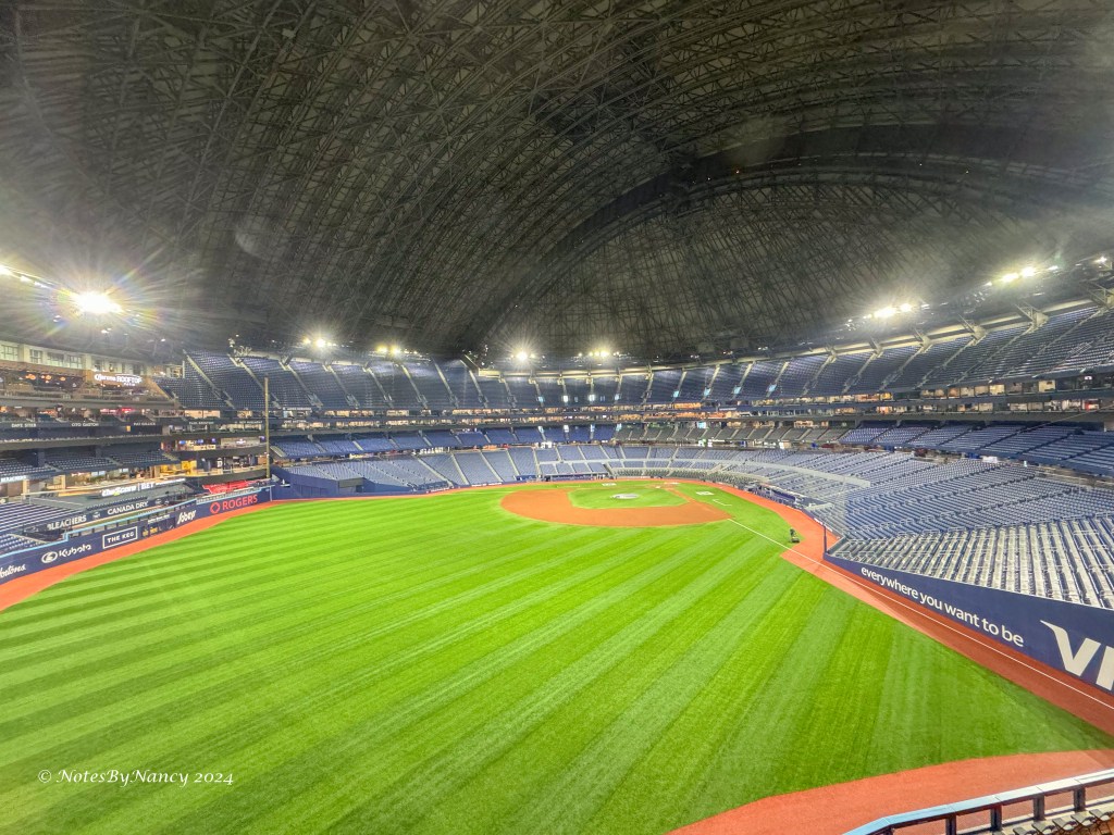 The Rogers Centre opened in 1989 as the Sky Dome and has a hotel attached to it with rooms looking out on the stadium from the outfield. It was the first stadium with a fully retractable roof. It was renamed the Rogers Centre in 2005 when Rogers Communications purchased it and the Blue Jays. The hotel is centrally located for tourist activities and is currently a Marriott. I’ve accumulated a ton of Marriott points over the past 30 years, so I used points to book a 5-night stay (for the price of 4 nights – yahoo!). While it would be fun to have a room overlooking the field, they are quite pricey, and I’d rather spend that money on great seats (actually a lot less money!) and other experiences.