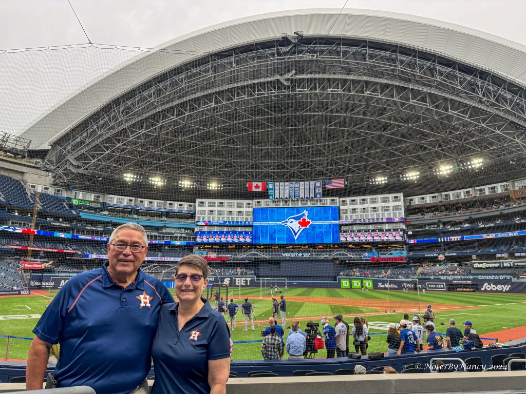 For our 20th anniversary, Dave wanted to go somewhere with lower temperatures than Texas – I readily agreed of course! We settled on Toronto for several reasons, among them – Dave had never been there, I was here once – 44 years ago, our honeymoon 20 years ago was to Canada, it’s a non-stop flight from Houston, the Astros were playing the Blue Jays and Toronto was one of my six remaining MLB cities in which to watch an MLB baseball game (I still need Washington, Miami, Minnesota, Arizona, and Seattle).