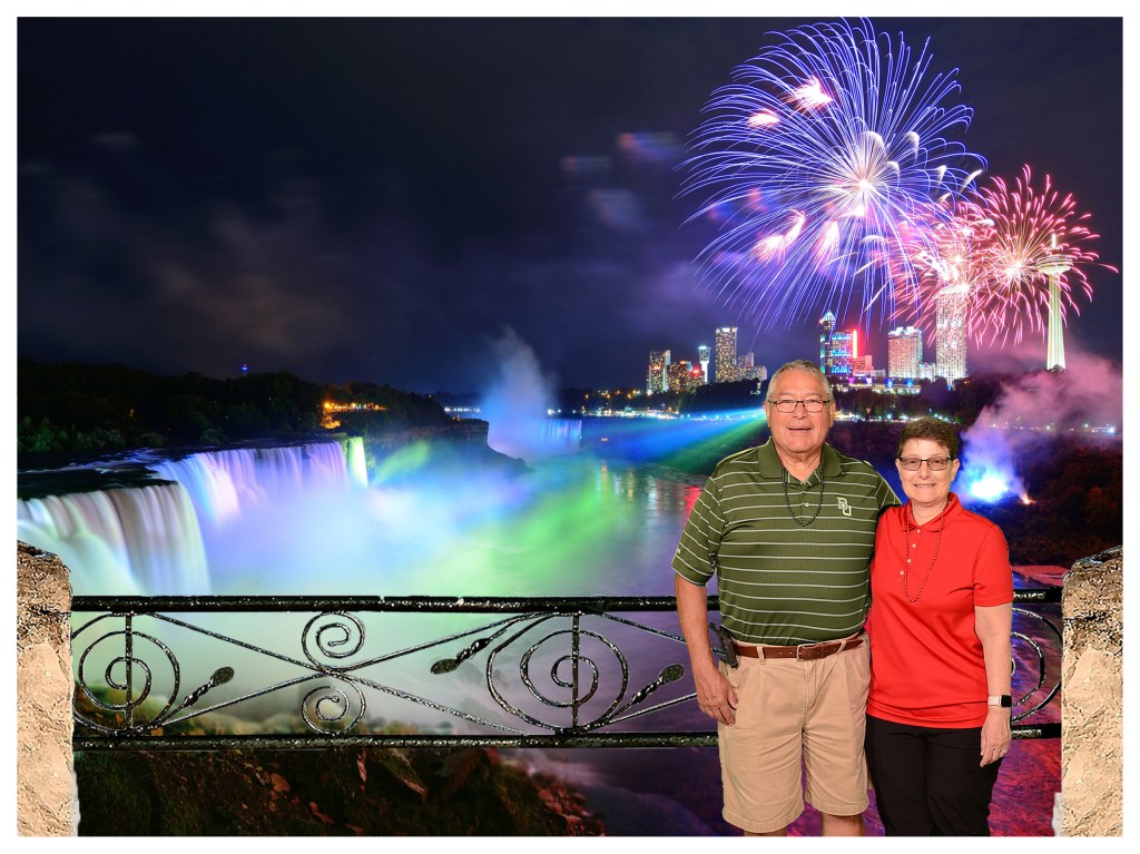 We closed out the day watching the wrap-around coverage of July 4th Fireworks and concerts across the US on television, including shots from Niagara Falls with the falls all lit up red, white, and blue. If we’d been there, it would have looked something like this!
