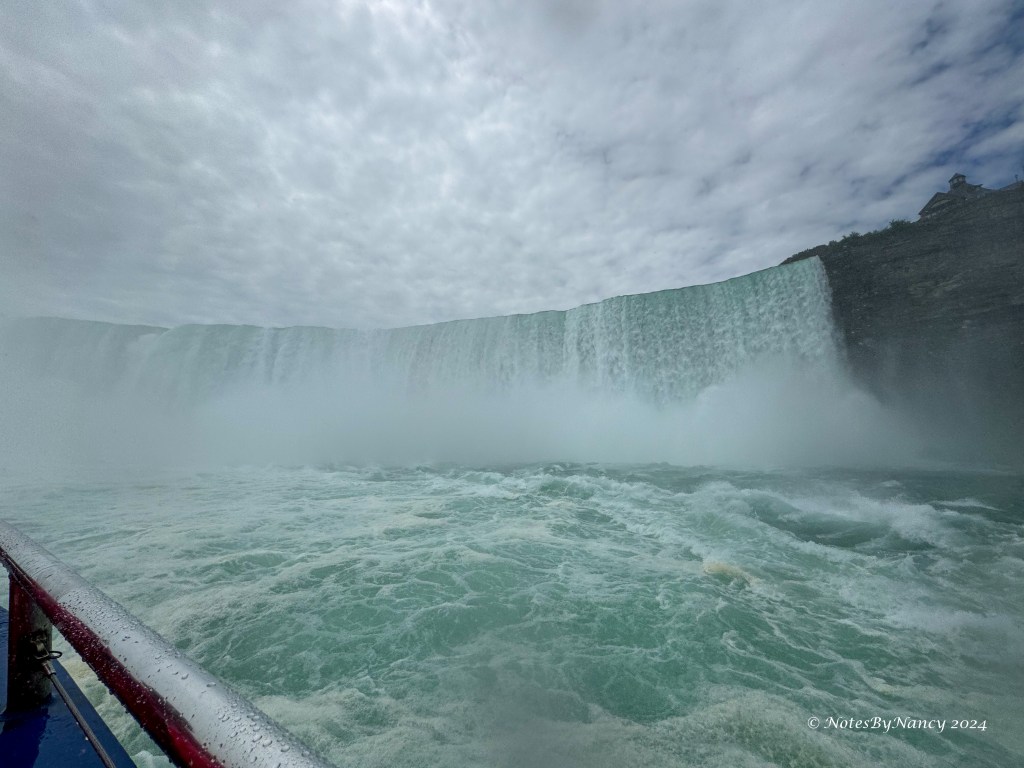 Finally, it was time for the ultimate falls experience – the Niagara City Cruise Hornblower voyage to the base of Horseshoe Falls. Although they distribute recyclable “mist” ponchos, they don’t keep you very dry! I did manage to keep my shirt dry, but my hair, pants, and shoes were soaked! At least I had the foresight to wear quick-dry hiking pants for this adventure!