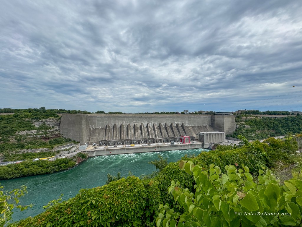 Our final stop was at an overlook for the current power stations on both the US and Canadian side. The Lewiston Pump-Generating Plant and Dam supporting the Robert Moses Niagara Hydroelectric Power Station (opened in 1961) is on the US side. Various power plants have been located here since the 1850s. On the Canadian side are the Sir Adam Beck Hydroelectric Generating Stations, commissioned in 1922 and 1954. The Robert Moses plant is the 3rd largest hydroelectric plant in the USA with a 2675 MW capacity. The Sir Adam Beck I & II plants combine to be the 9th largest hydroelectric plant in Canada with a 2000 MW capacity.