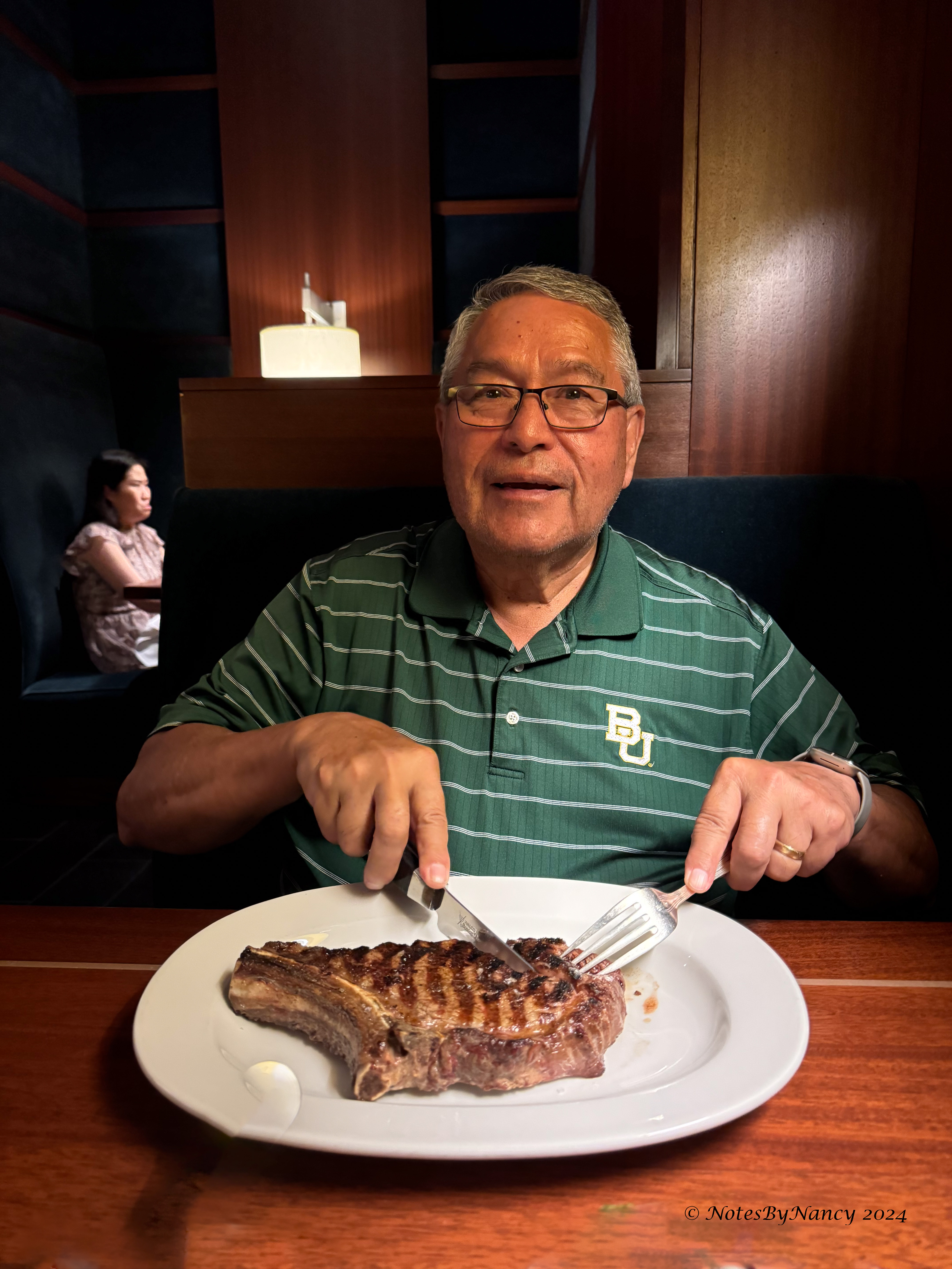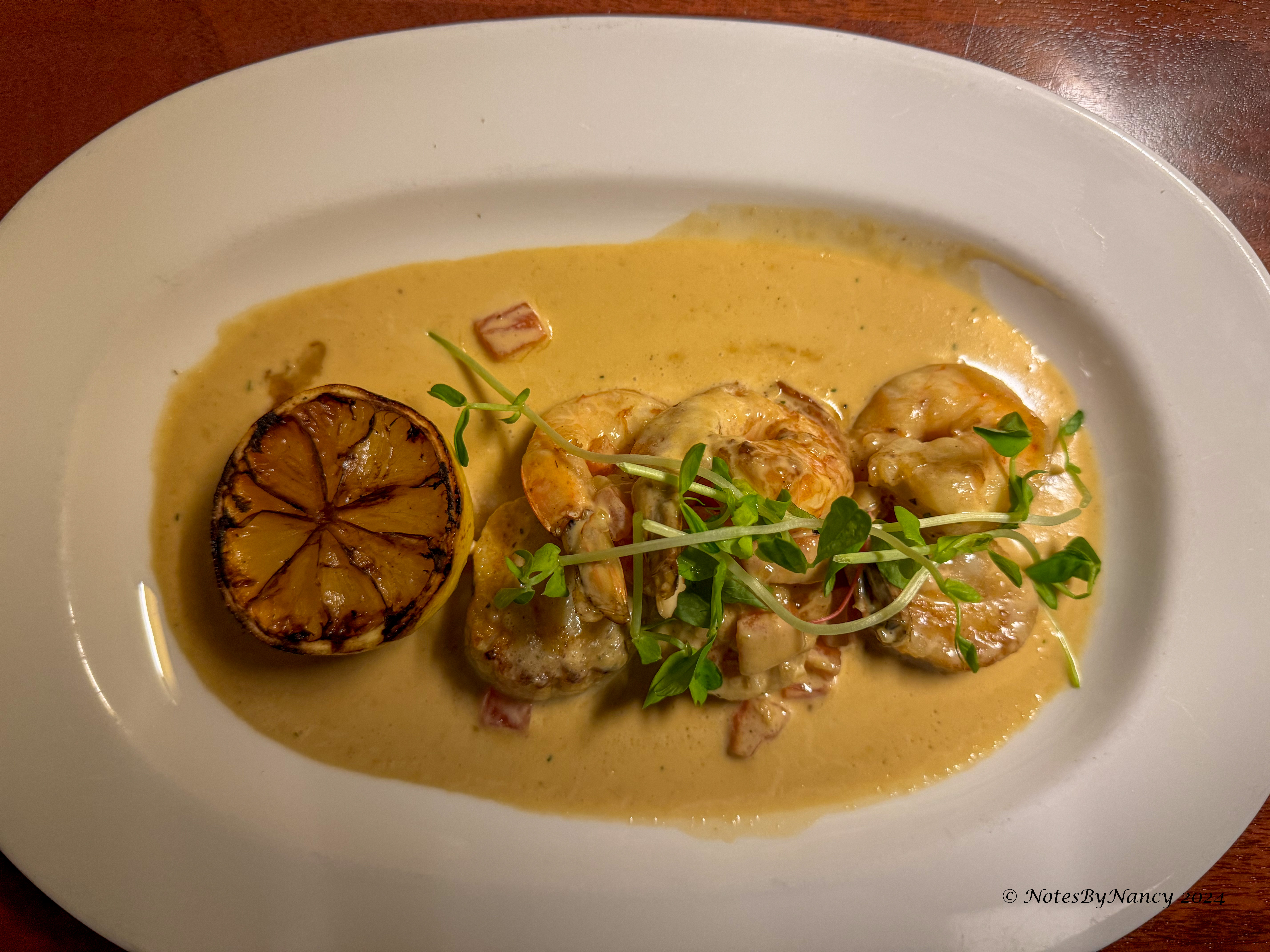 Dave was ready for a steak, and I was hungry for seafood, we found that The Shore Club fit the bill nicely. It was an easy 10-minute walk, and they had plenty of availability for a last-minute reservation. Although it was trying to rain on our walk over, it wasn’t too bad, giving us a chance to use the umbrellas we’d packed.