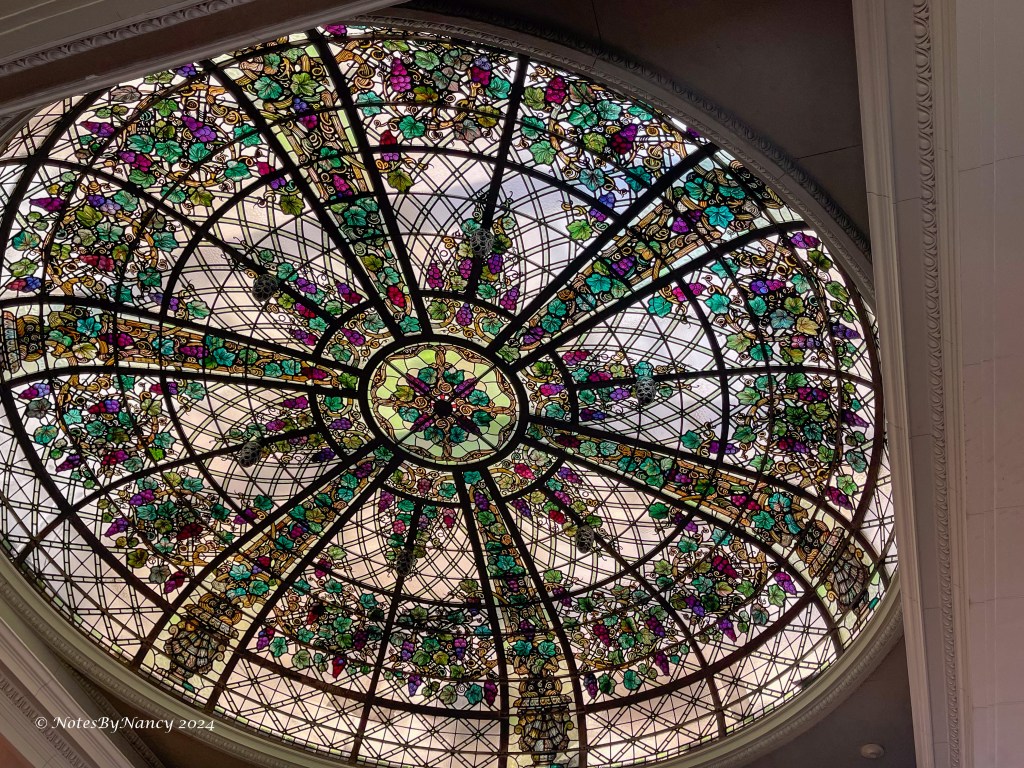 The main rooms on the first floor are the Great Hall, the Library, Dining Room, Serving Room, Sir Pellatt’s Study, and the beautiful Conservatory. The BlueBlood Steakhouse, one of the top Toronto steakhouses, is located in the ornate Oak Room, which took 3 years to carve. Access to the Garden Terrace is available from both the Great Hall and the Library. I love the ceiling details and stained glass!