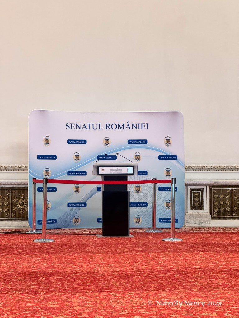 On our hour tour, we were able to see about 3% of the building – a couple of salon rooms for meetings, the ballroom, the Senate chamber, and the cafeteria. All the interior spaces are massive – from the staircase to the hallways. Our guide said that Ceauşescu was very picky about the height of the stairs matching his stride and had them rebuilt three times! When communism failed, the building was not completed and a decision had to be made – continue it, tear it down, or sell it. As the labor was all provided by the state, only the amount of raw materials could be accounted for and therefore it is impossible to determine the cost of the building. Ultimately, they decided to finish the construction and utilize it for their new government. Many of the rooms can be rented for various functions. Two of the rooms we saw rent for between 1200-1500 Euros per day which seems very reasonable.