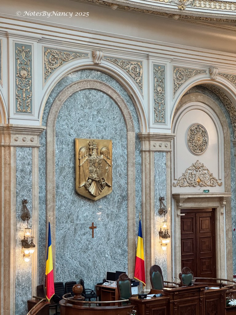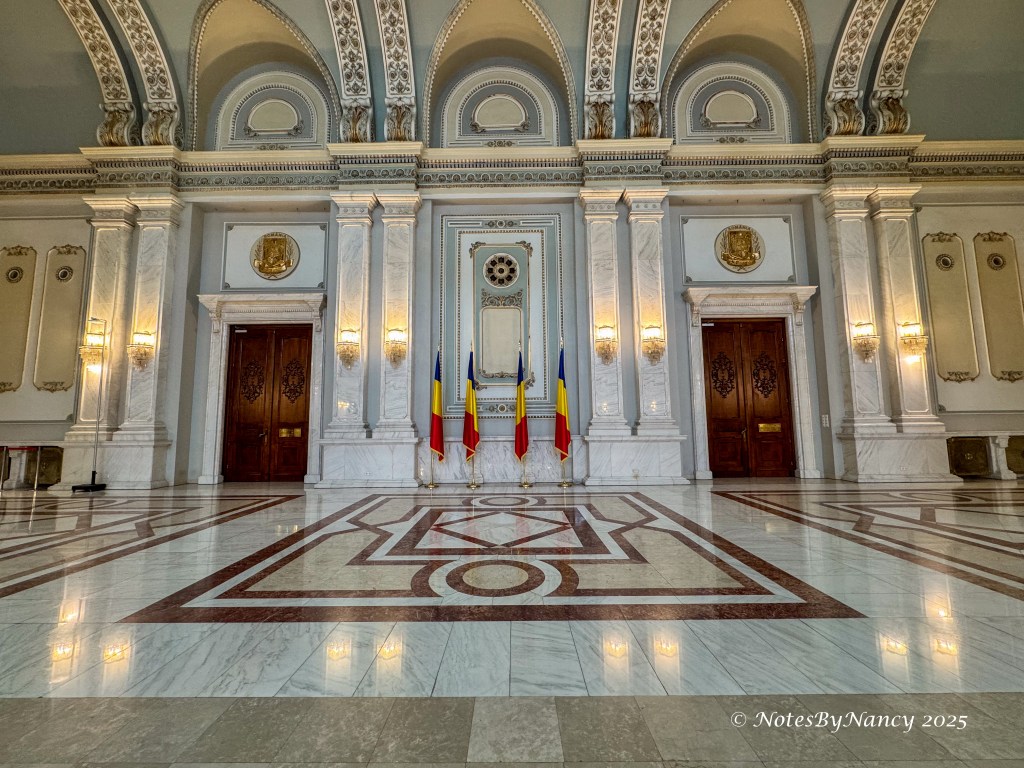 Our first full day on the Viking itinerary began with breakfast at the hotel, then everyone loaded onto buses for one of 3 full-day excursions which all end with our embarkation on the Viking Ullur longboat. In each “port”, Viking has one included excursion offered. The included excursion for Bucharest was Bucharest and the Village Museum (7.5 hours, easy) with lunch and a “folkloric performance”. The two optional excursions were Highlights of Bucharest (6 hours, demanding), which includes a visit to the Spring Palace with lunch at the oldest beerhouse or Bucharest & the Palace of Parliament (8 hours, moderate) which includes a visit and lunch at the massive Palace of Parliament. Based on what we had pre-planned to do on our private tours with Cristi, we chose to pay for the optional Viking excursion to Parliament. This turned out to be a very good choice as only 4 other Viking guests selected this tour, so it was essentially a private tour!