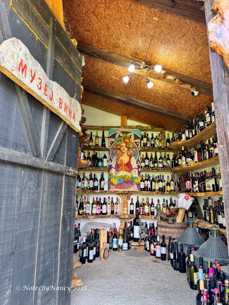 The sculptures from reclaimed wood were quite interesting as well. It is interesting to see what the artist made from various pieces. There is a B&B on the property, so he also has a “wine museum” with all the wine that visitors brought as gifts over the years as is the custom in Serbia. And, the views from this location are exceptional.