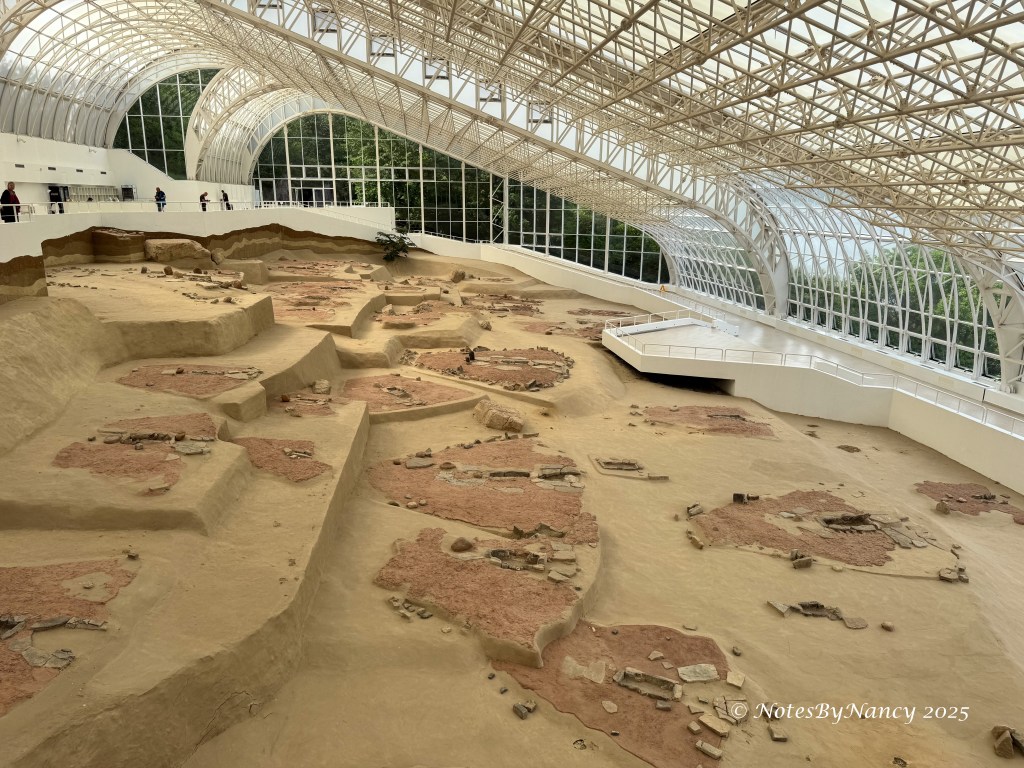 Ivan did an excellent job explaining the history of the site, its significance, and how our visit would go. It is approximately an 8-minute walk along a fairly flat path from the parking lot to the now reconstructed and covered site. Because they used glass and plastic as the covering to allow for natural light to better experience the site, it is like a greenhouse inside and we were glad to be visiting in the Spring!