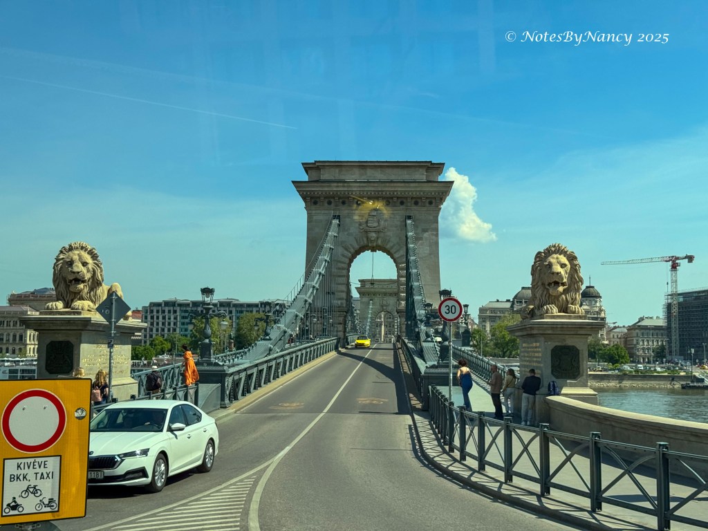 Two buses left at 8:45 and two more at 9:15 for the Snapshots tour. We were assigned to the 9:15 schedule which gave me plenty of time to take those final photos after breakfast. Our route took us south along the Danube on the Pest side to the Petőfi Bridge to cross to the Buda side.