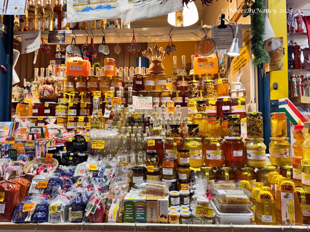 Once Rebecca gave us the time to meet to return to the bus, Dave asked her for advice on which vendor to buy paprika from. She took us directly to one of the stands (there are many selling paprika) that she recommended. She said all of the paprika sold in the market is certified and prices are relatively the same at all stands. Paprika purchase completed, we wandered amongst all the stalls, but didn’t find anything else that tempted us to open our wallets besides trying some plum strudel. Technically, this was the tour’s lunch stop, but we’d eaten a big breakfast and we’d be meeting my colleague for an early dinner, so a pastry sufficed!