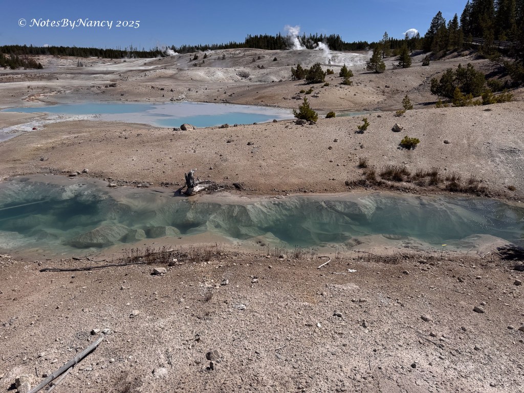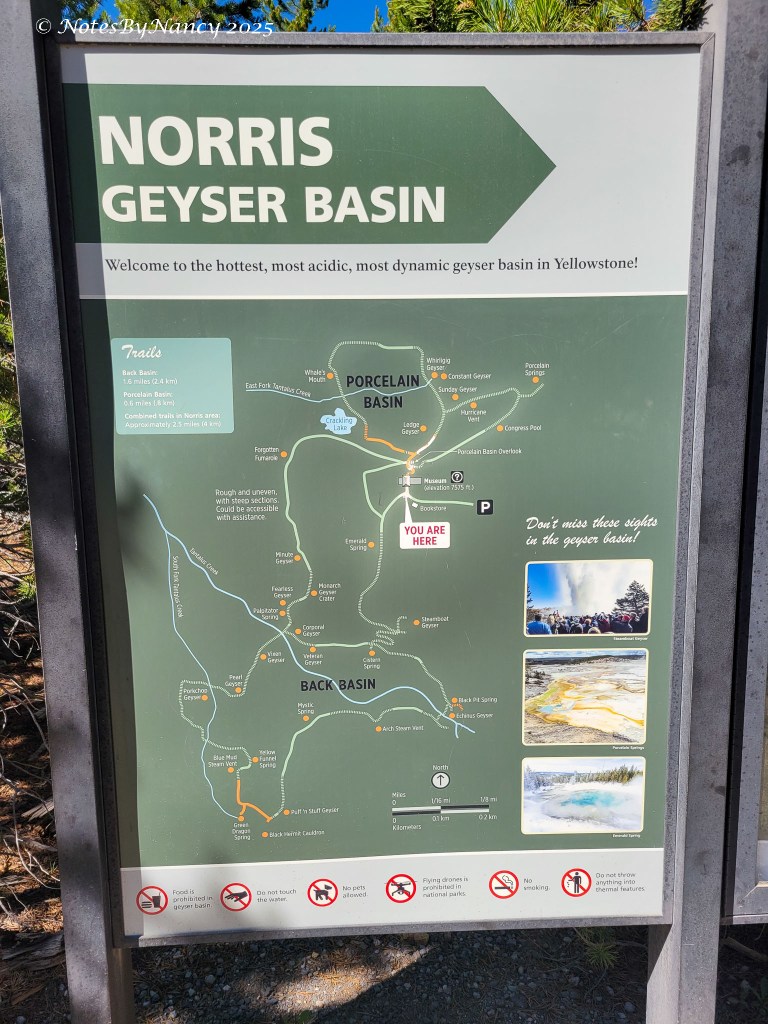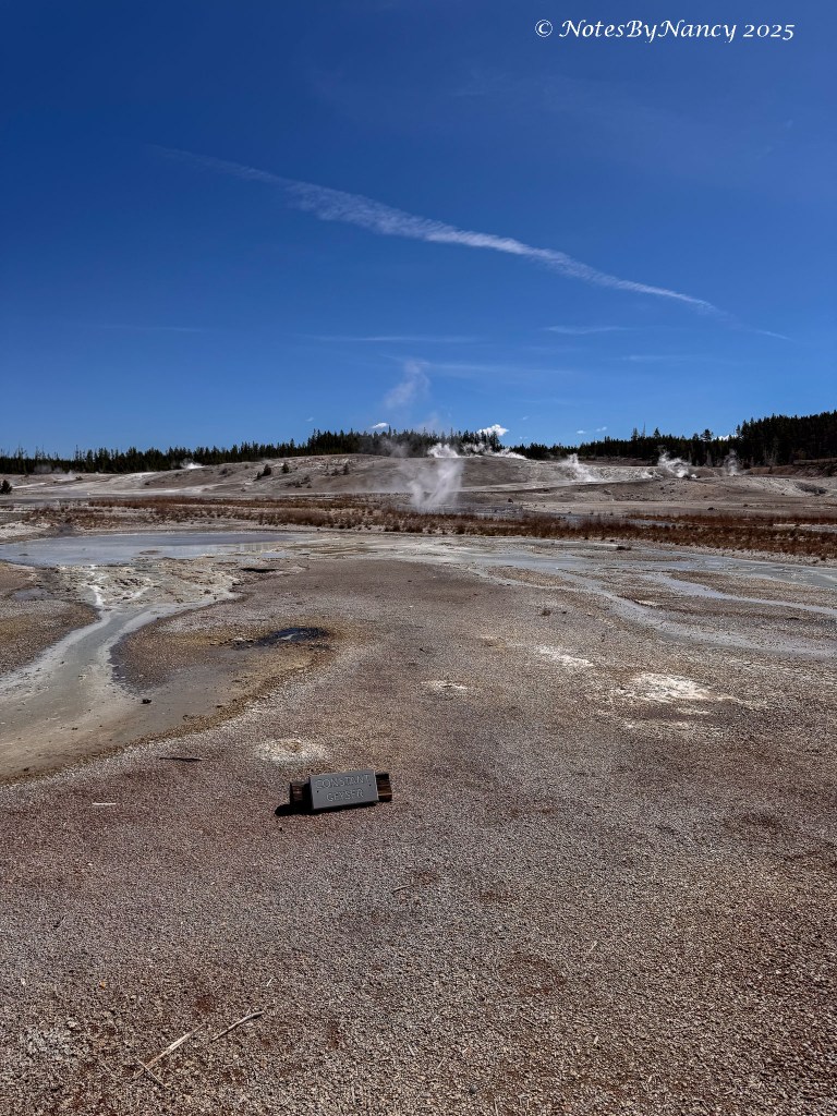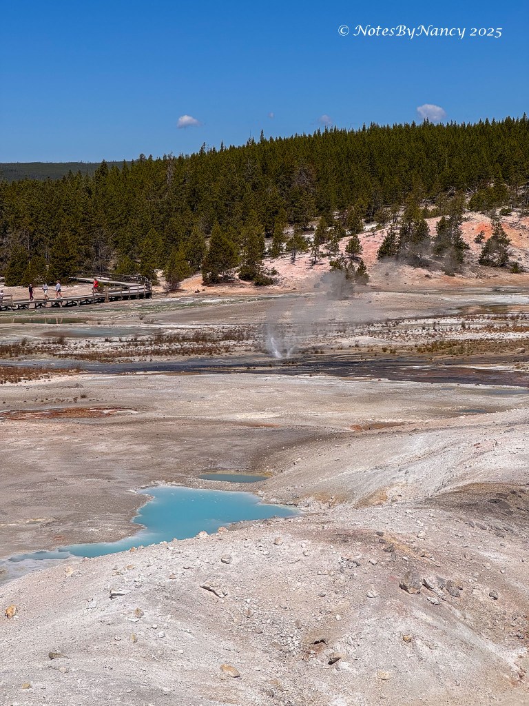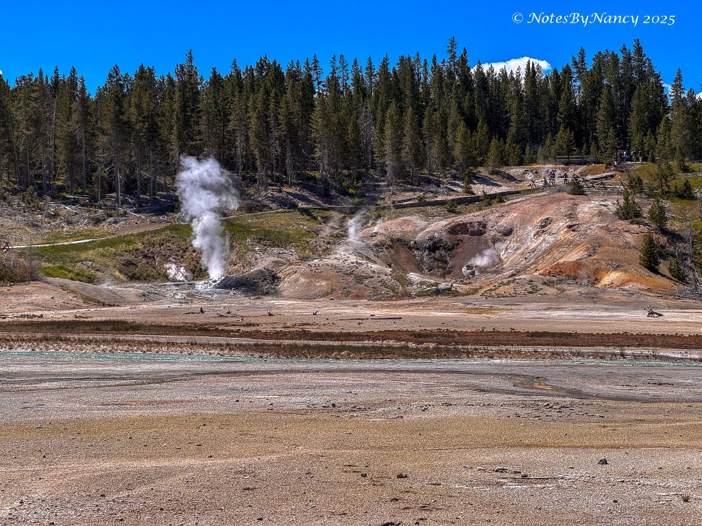 There are two basins within the larger basin – Porcelain Basin and Back Basin (you’d think they’d come up with a better name than “Back” – not much competition with “Porcelain”!). The boardwalk around Porcelain Basin is ¾ mile (1.2km) –The walk around Back Basin is 1.5 miles, has more shade, and also has the world’s tallest active geyser – Steamboat Geyser (300-400 feet), but it has unpredictable eruptions.
