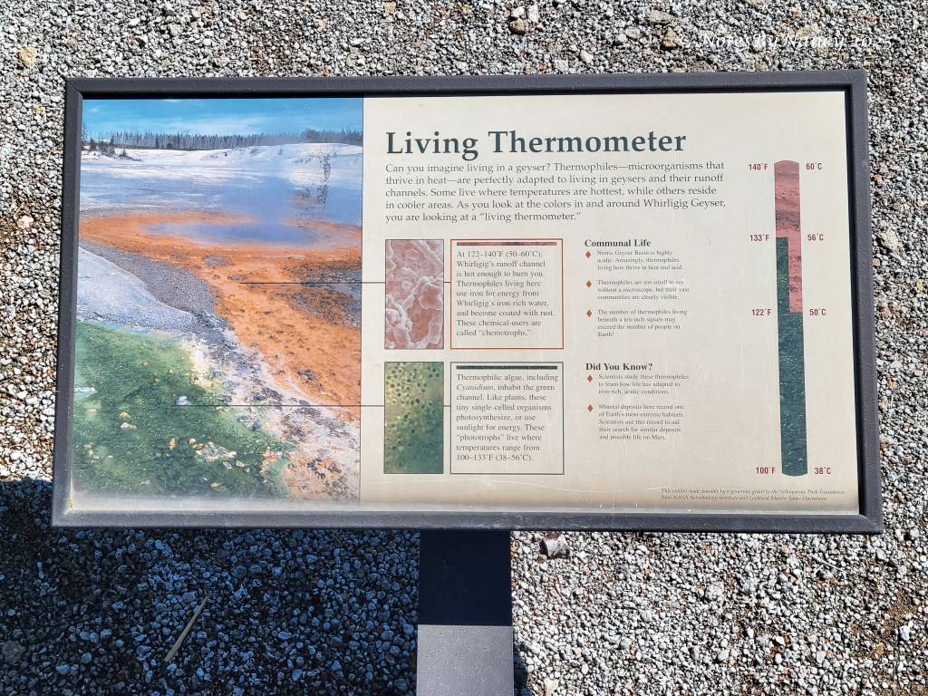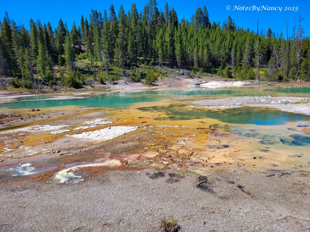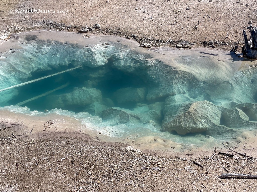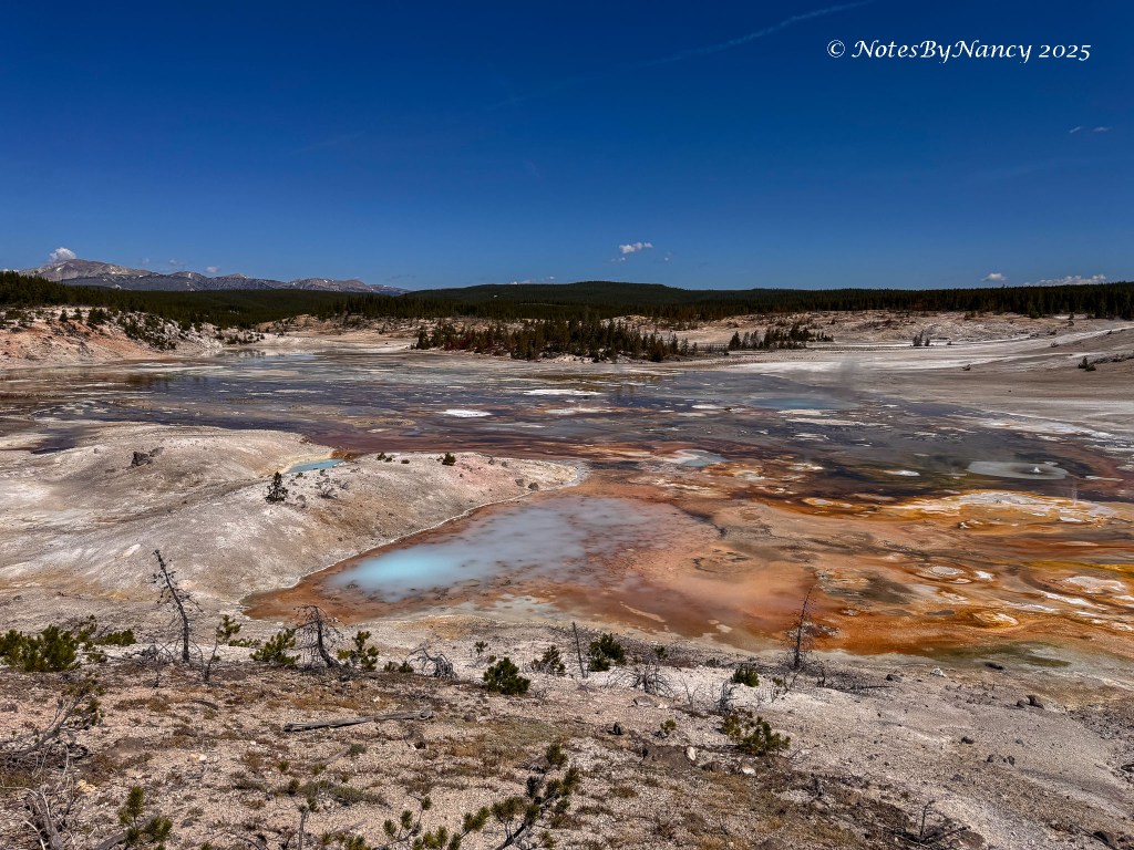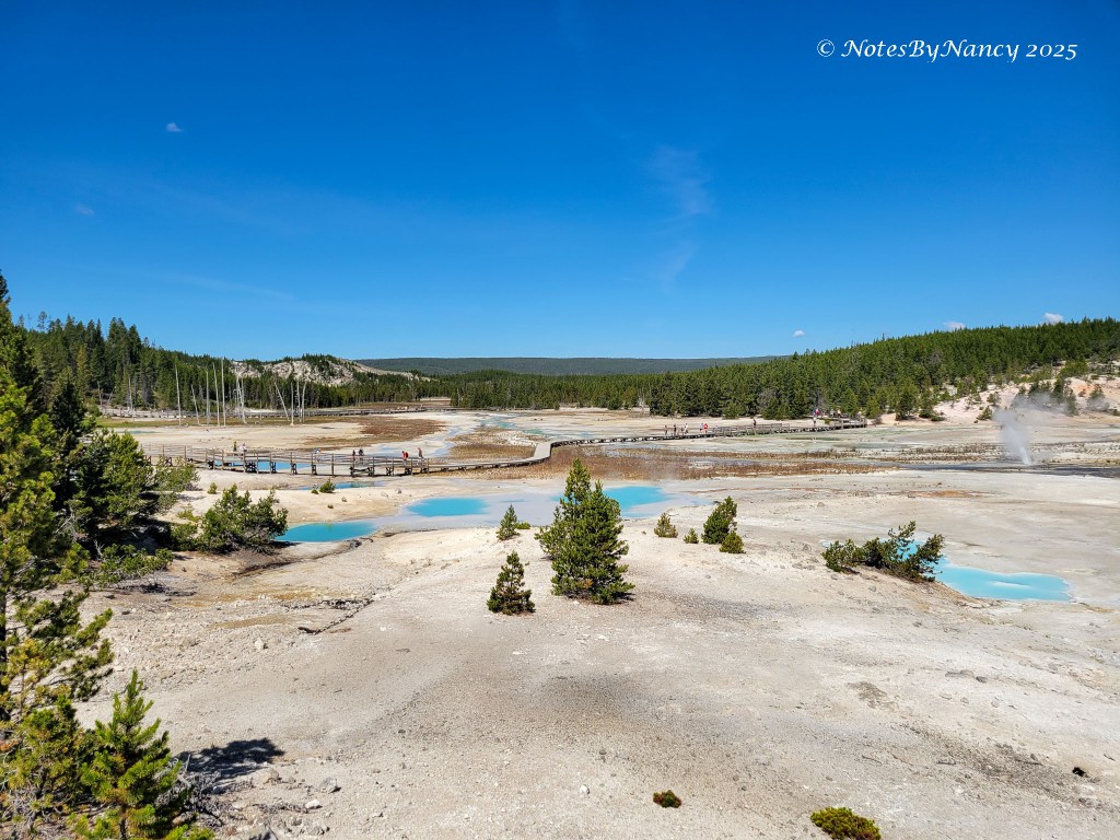 There are two basins within the larger basin – Porcelain Basin and Back Basin (you’d think they’d come up with a better name than “Back” – not much competition with “Porcelain”!). The boardwalk around Porcelain Basin is ¾ mile (1.2km) –The walk around Back Basin is 1.5 miles, has more shade, and also has the world’s tallest active geyser – Steamboat Geyser (300-400 feet), but it has unpredictable eruptions.