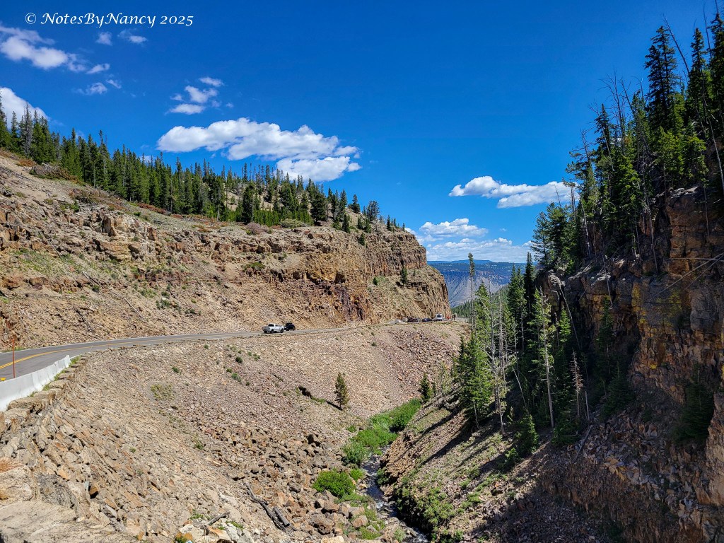 Back on the main road (Hwy 89) towards Mammoth we didn’t suddenly end up in California outside San Francisco. Yellowstone has its own Golden Gate. I can’t imagine building this section of road.