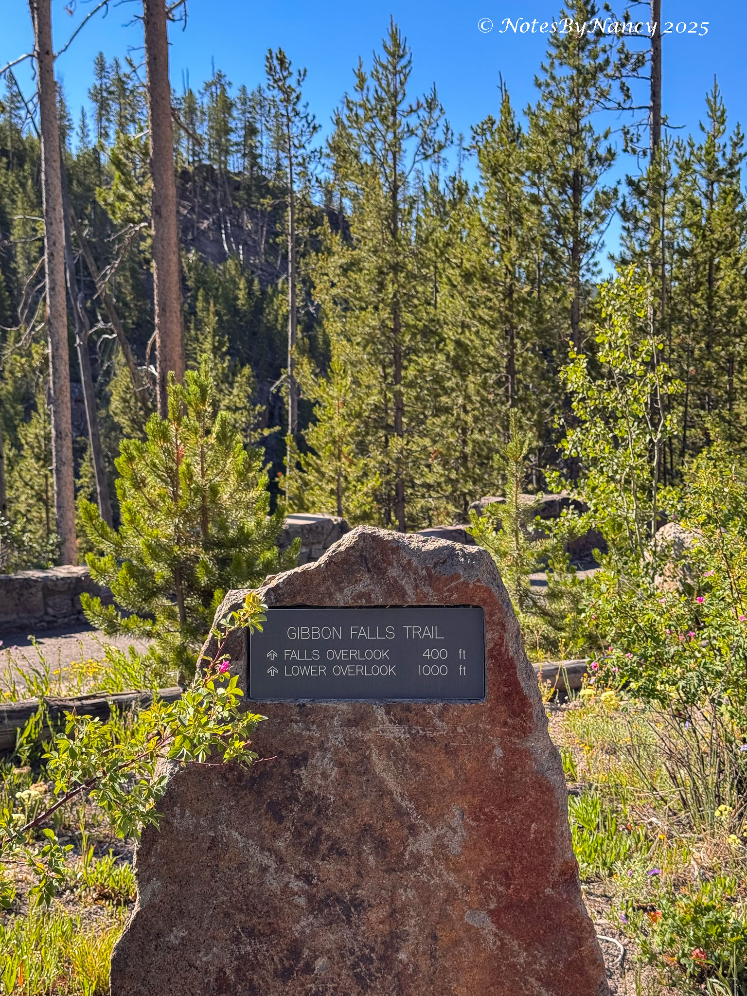 Our first stop was Gibbon Falls. There is an easily accessible pullout and walk to views of the 84-foot waterfall on the Gibbon River about 4.5 miles from where it flows into the Madison River.