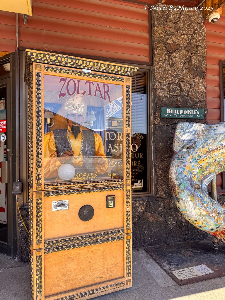 It was about a 50-mile drive back to West Yellowstone, where we decided to try out a local ice cream place and found our friend Zoltar again (we last saw him in the Finger Lakes years ago). No one made a wish.