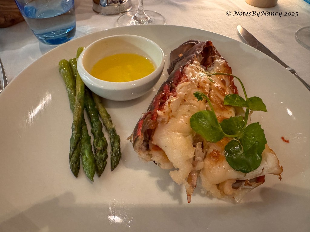 Grilled Lobster was featured on tonight’s menu, and we expected a line when we went to the restaurant. There was a line, but not of passengers, it was a line of servers awaiting guests! When we asked where everyone was – the reply was that there were still over 400 (half the ship) on their full-day excursions! Needless to say, service was very good as it was almost like we had the entire wait staff to ourselves.
