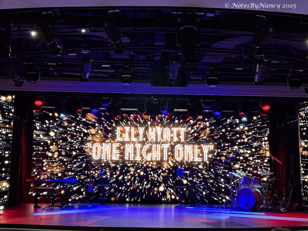 The assistant cruise director, Lily Wyatt, was the featured performer in the Star Theater tonight in her show “One Night Only”. She has a beautiful voice and has quite the repertoire of UK songs from the 1940s-2010s – everything from Vera Lynn’s “We’ll Meet Again” to Adele’s “Rolling in the Deep”.