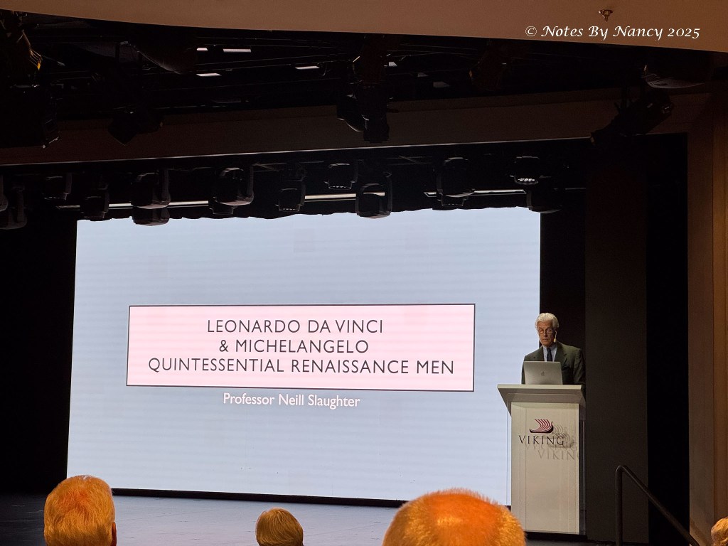 At 9:30a.m., we attended the lecture by Professor Neill Slaughter entitled: “Leonardo da Vinci & Michelangelo – Quintessential Renaissance Men”.