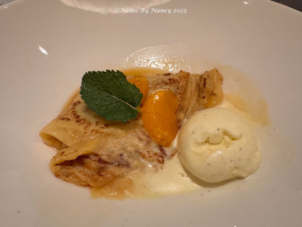 Tonight’s feature was a Poolside BBQ, so we started there and collected a variety of food items. Then, we headed into the World Café to eat and added additional items from the buffet there. For dessert, we had eyed the options on The Restaurant’s menu and decided to go there next. The wait staff laughed when we told them we were just there for dessert!