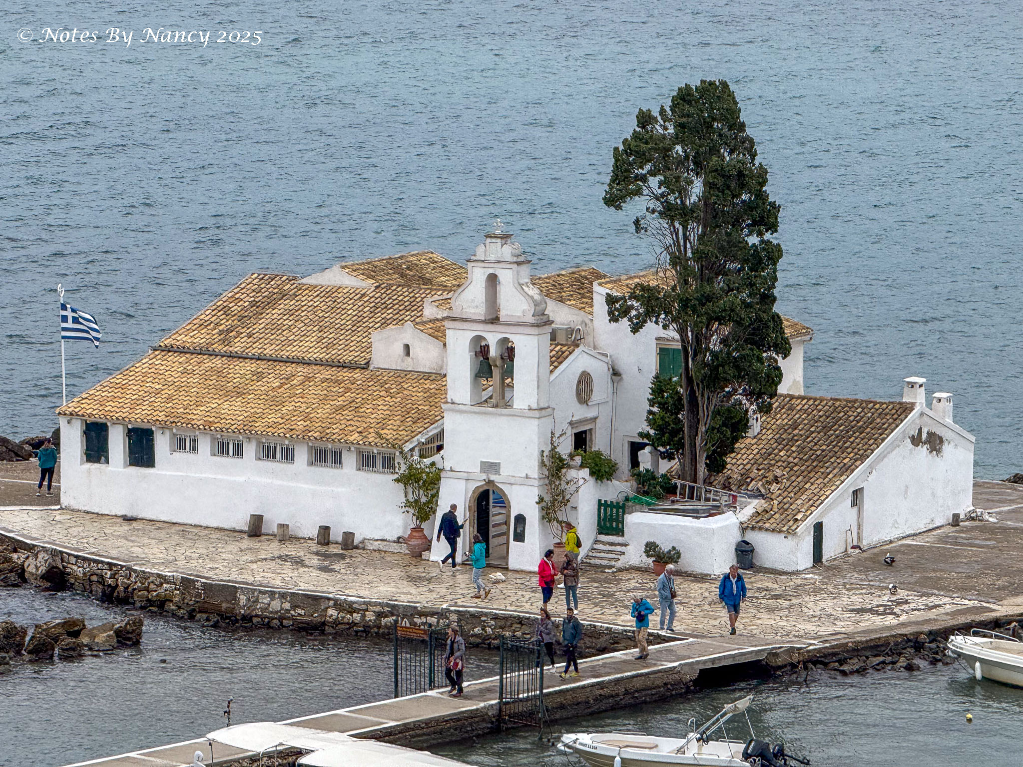 The views from Kanoni are good, but as there were several busloads of us arriving at the same time, it was a little crowded. Thankfully, the Quiet Vox allows you to wander away from the guide and still hear his commentary. We even got to see a plane coming in over the water to land at the airport adjacent.