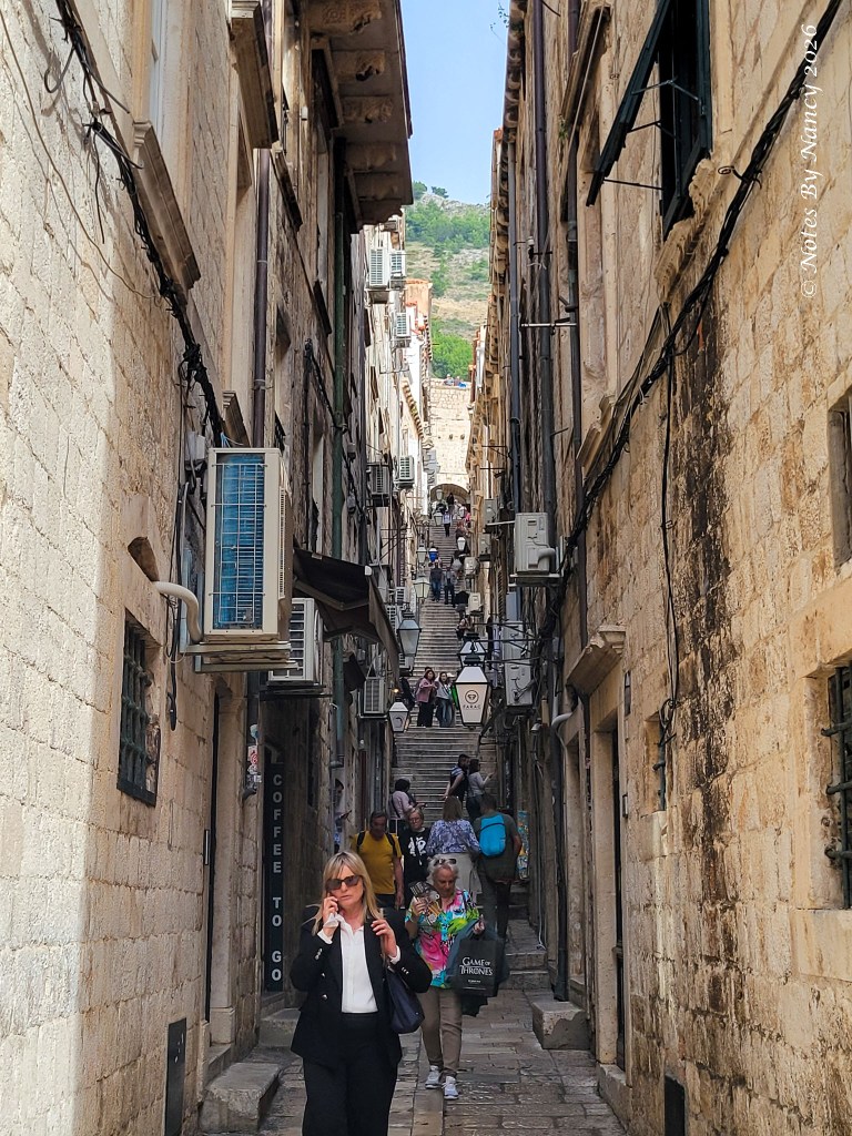The Old Town of Dubrovnik is best known for its medieval wall originally providing protection but now providing fabulous views! It is approximately 2km (1.2 miles) long with over 1000 steps to navigate as you traverse the circumference. Already an interesting place to visit, the past few years have increased its popularity due to Game of Thrones (GoT) having been filmed here and according to our guide literal hordes of fans have descended upon them. Everywhere you looked there were GoT souvenirs and GoT-themed tours. To control the crowds somewhat, there is now a charge of 40 Euros (March-November) or 20 Euros (December-February) to “walk the walls”. We hope to return to Dubrovnik someday, so we decided to defer our plan to walk the walls until then.