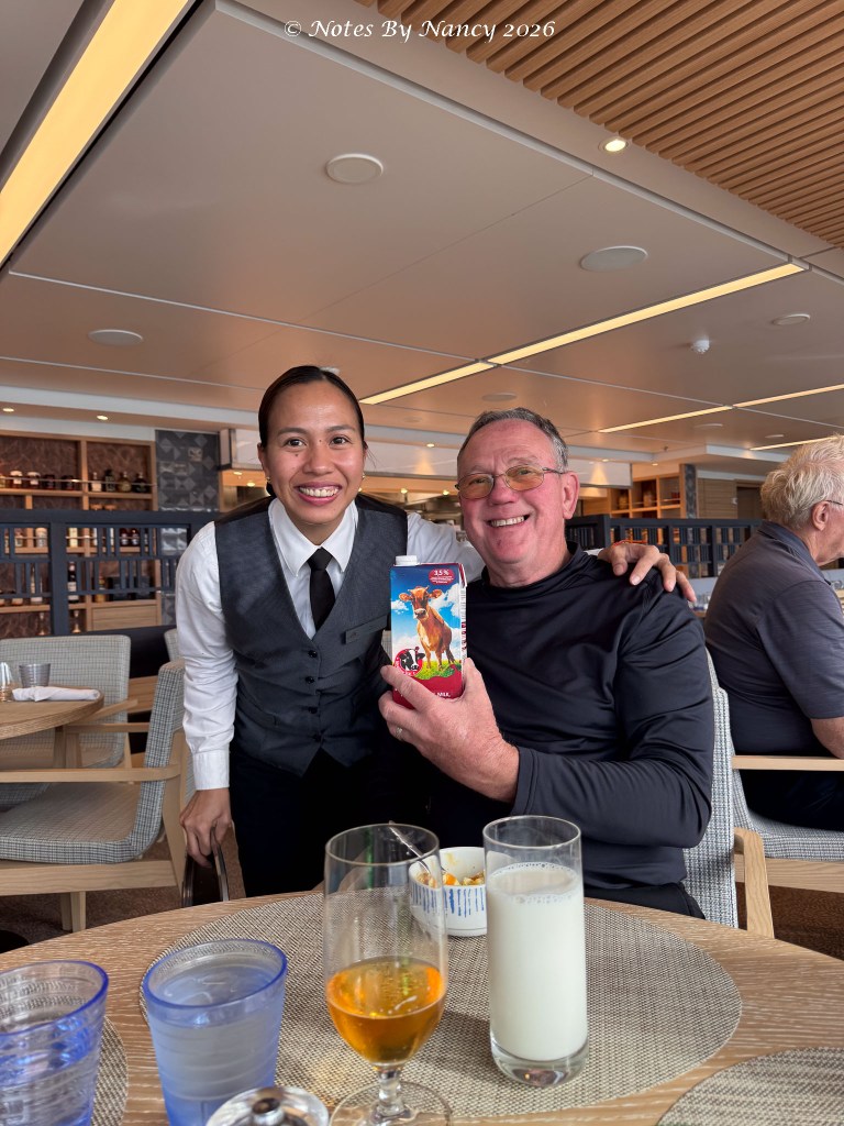 At lunch Keith requested more milk, so the waitress brought him the carton! We all had a good laugh!