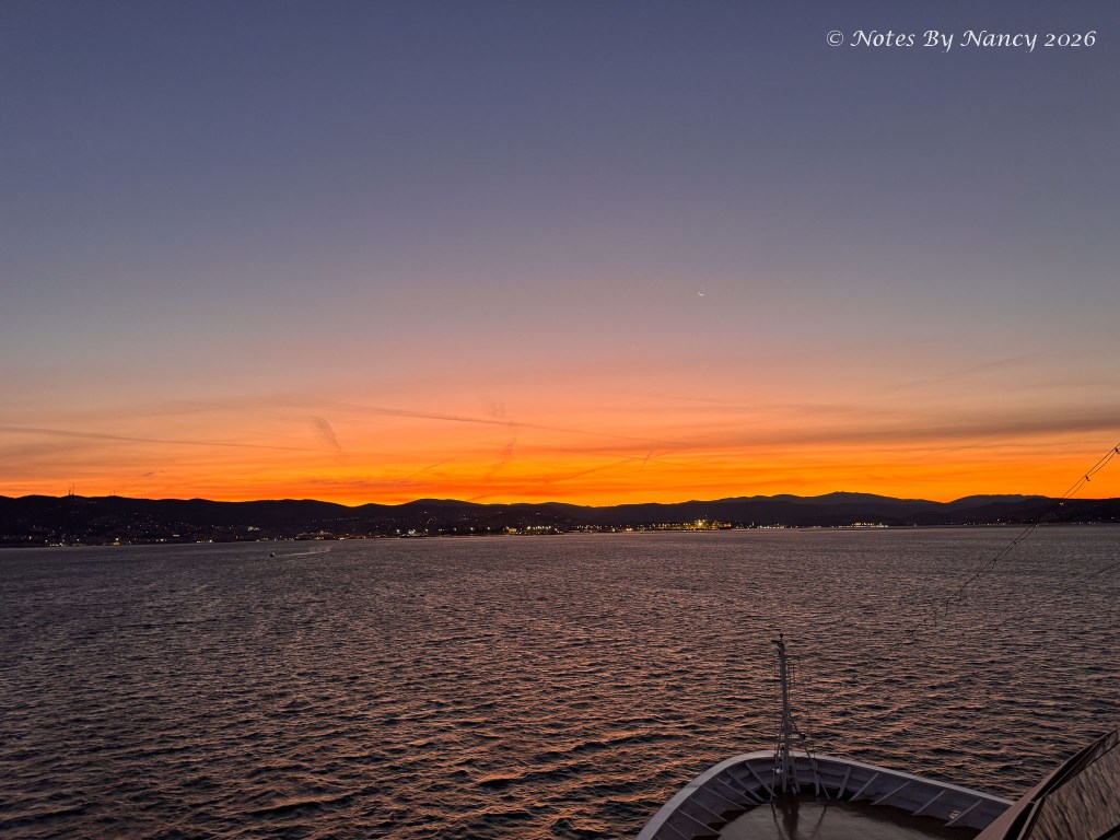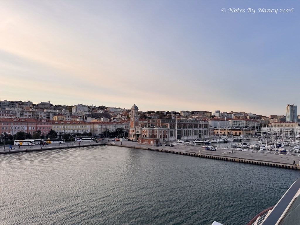 A gorgeous sunrise greeted us as we approached the harbor at Trieste, Italy, where we will overnight before being kicked off disembarking tomorrow morning.