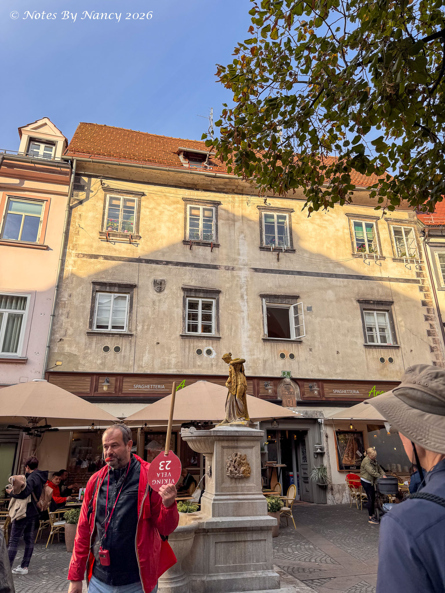 We continued away from this square and entered a small alleyway to view the Fountain of Girl With a Jug and behind her Ljubljana’s oldest house from 1528.