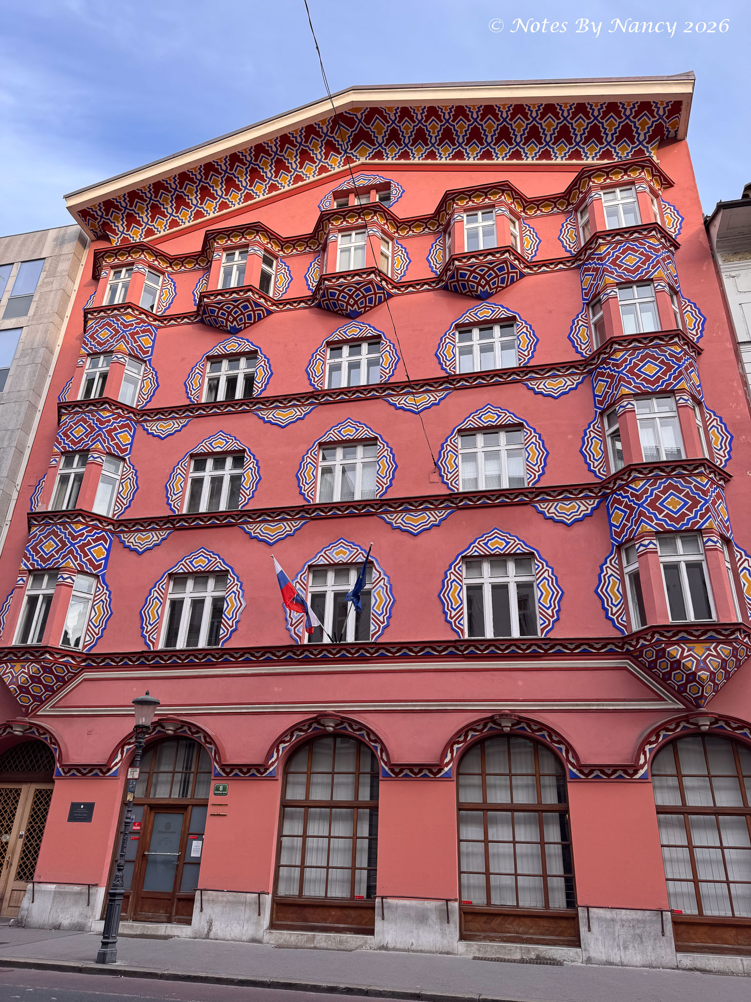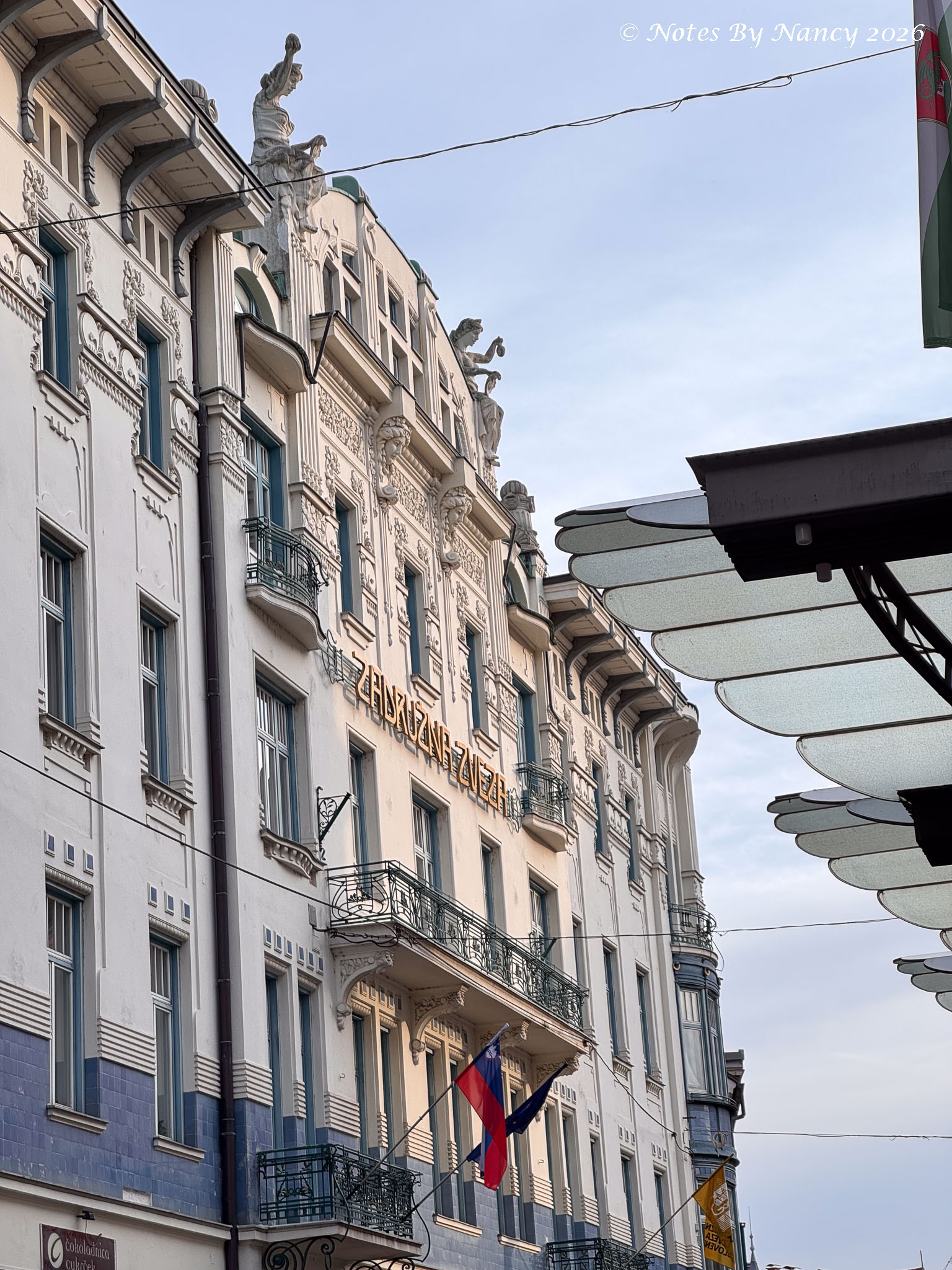 More Art Nouveau buildings lined Miklošičeva Street including architect Ivan Vurnik’s 1921 tribute to Slovenian heritage.