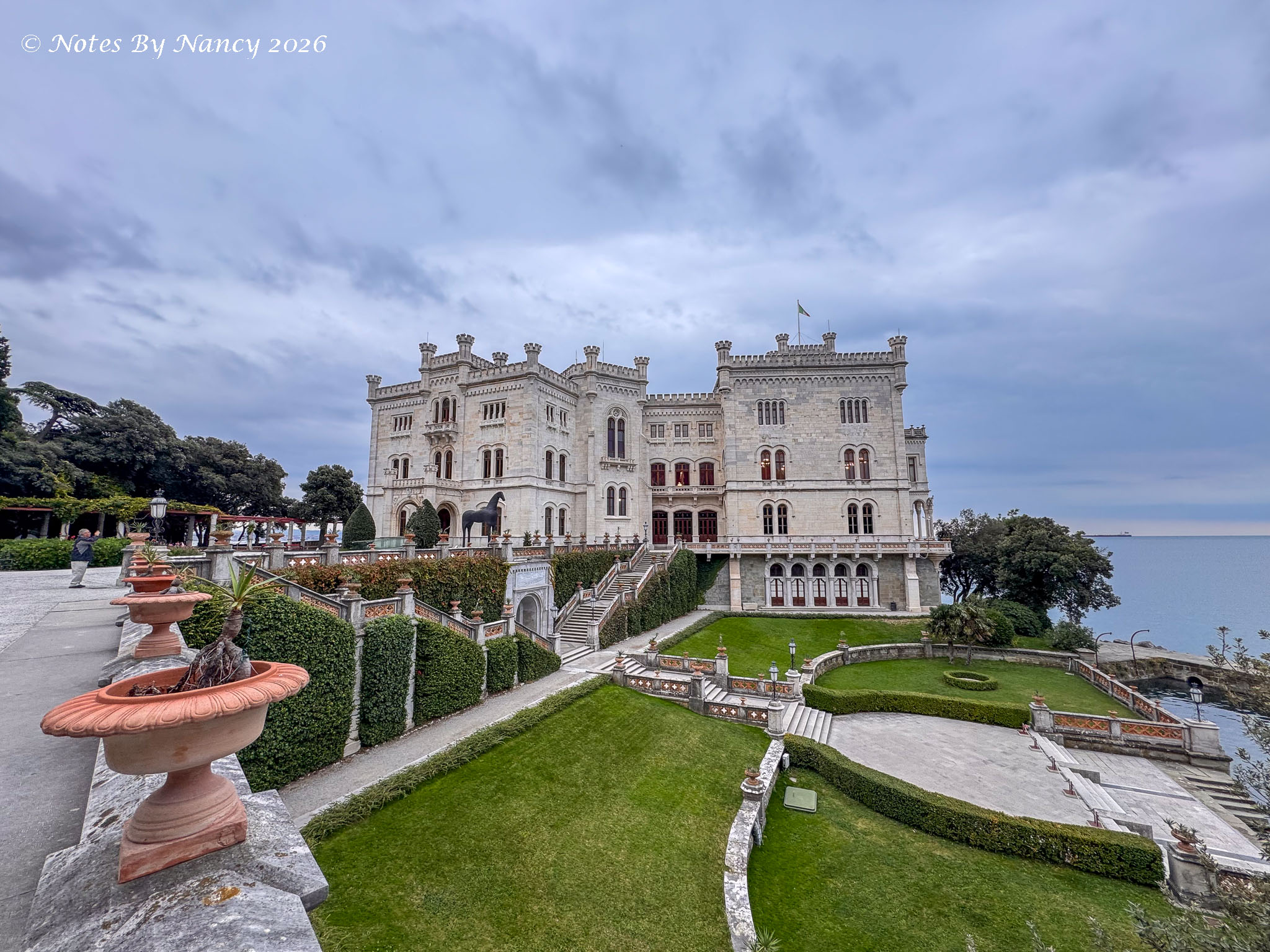 Our driver, Nenad, met us near the cruise terminal in the parking area for pick-ups and drop-offs. It was a little bit of chaos as both Viking Vela and a large MSC cruise ship were disembarking and embarking simultaneously. But, we found each other, loaded the luggage for the four of us into the van, and were off to Miramare Castle just 20 minutes away.