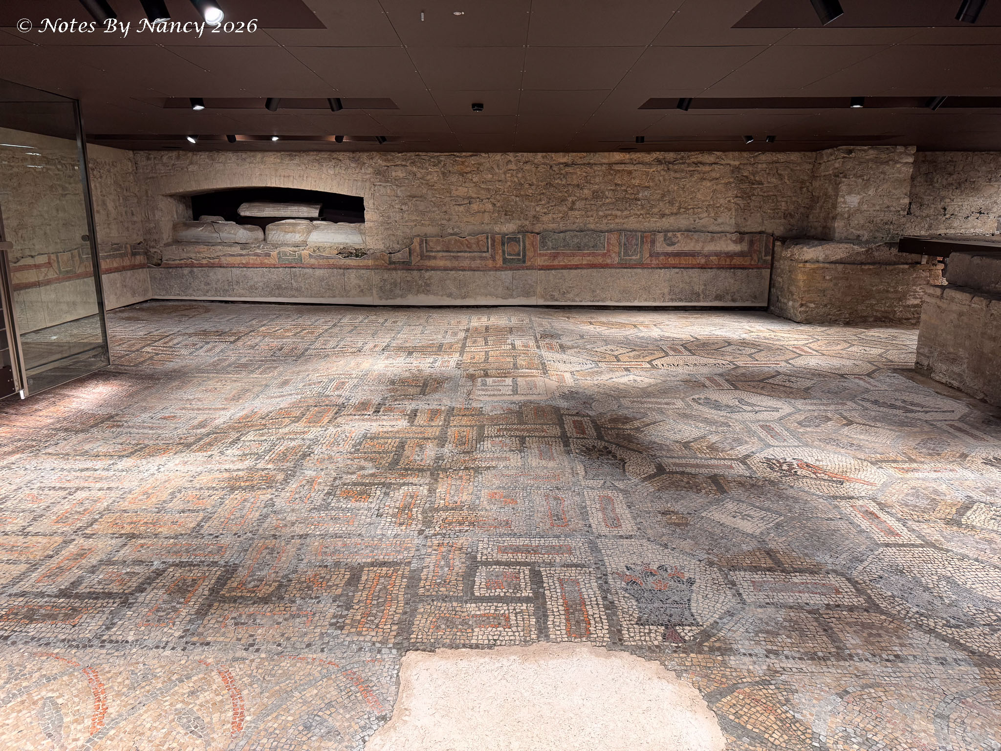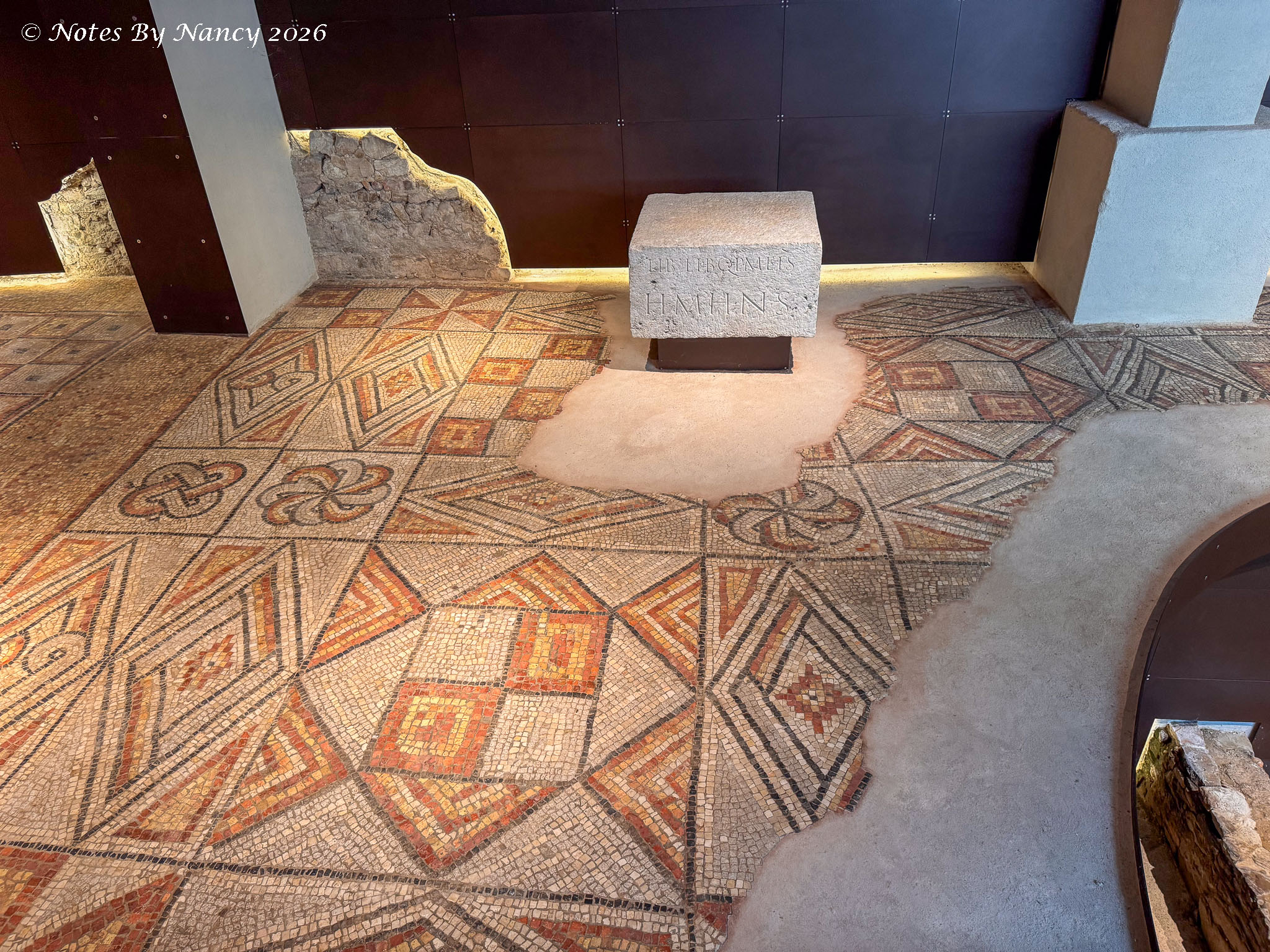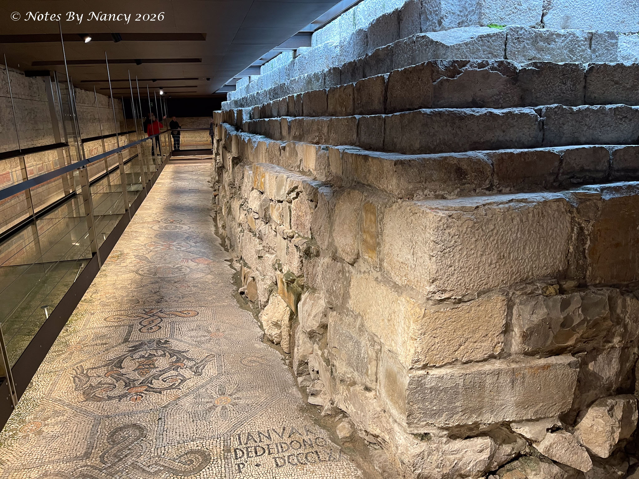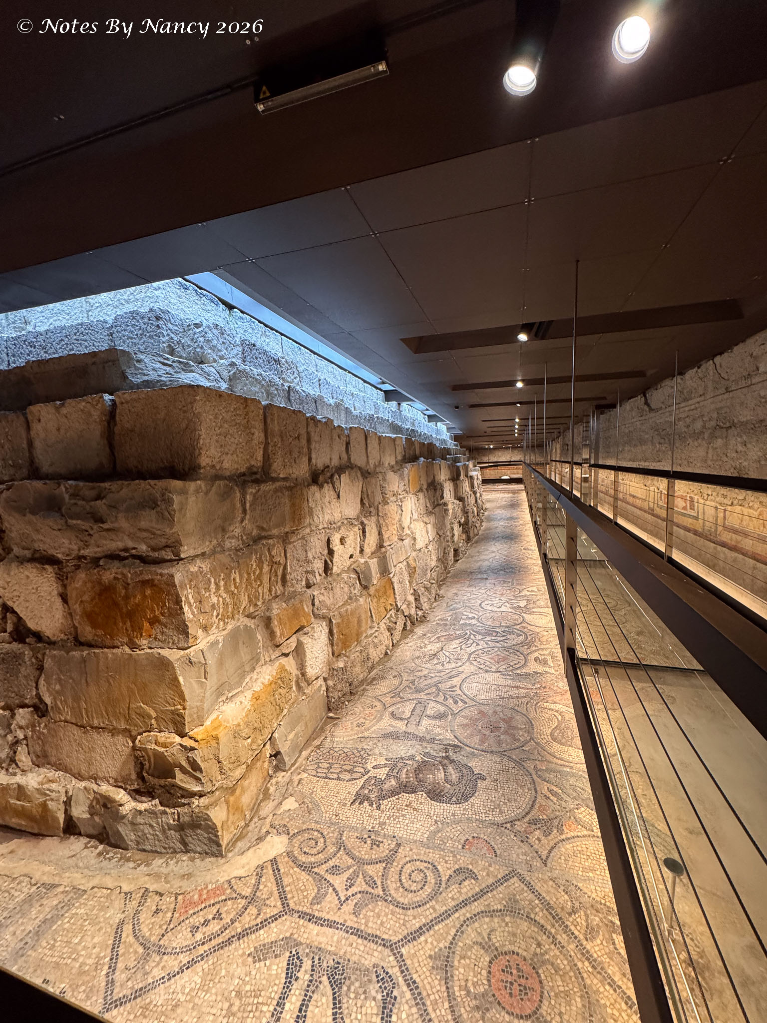 A short distance from the basilica are the excavated remains of the Bishop’s Palace (4th-5th Century) which was built upon the foundations of an earlier house from the 1st-2nd Centuries. The displays and signage explaining the layers of the excavations and the exquisite mosaics are very well done. Not technically part of the basilica, this part of the archaeological museum is known as the Domus and Episcopal Palace.