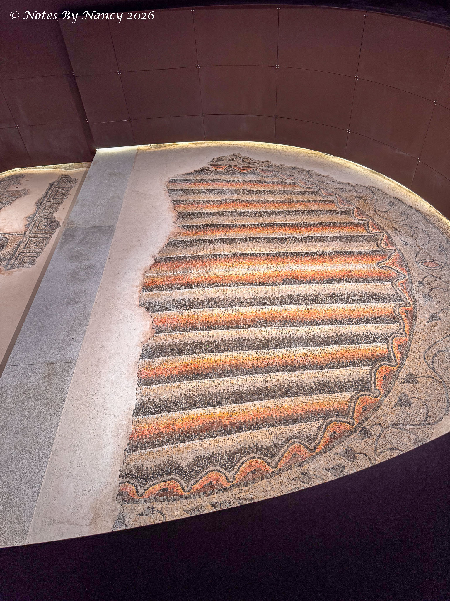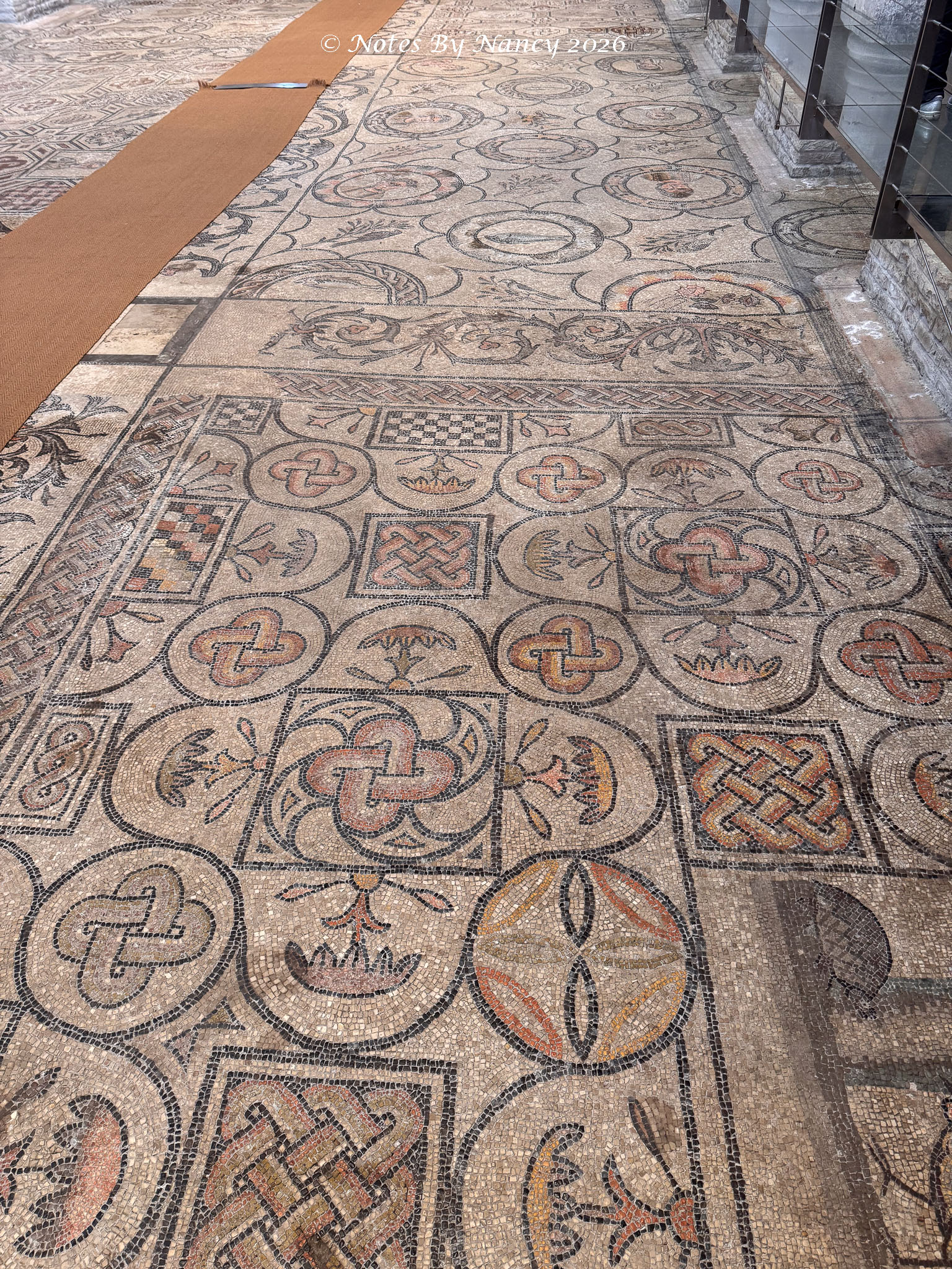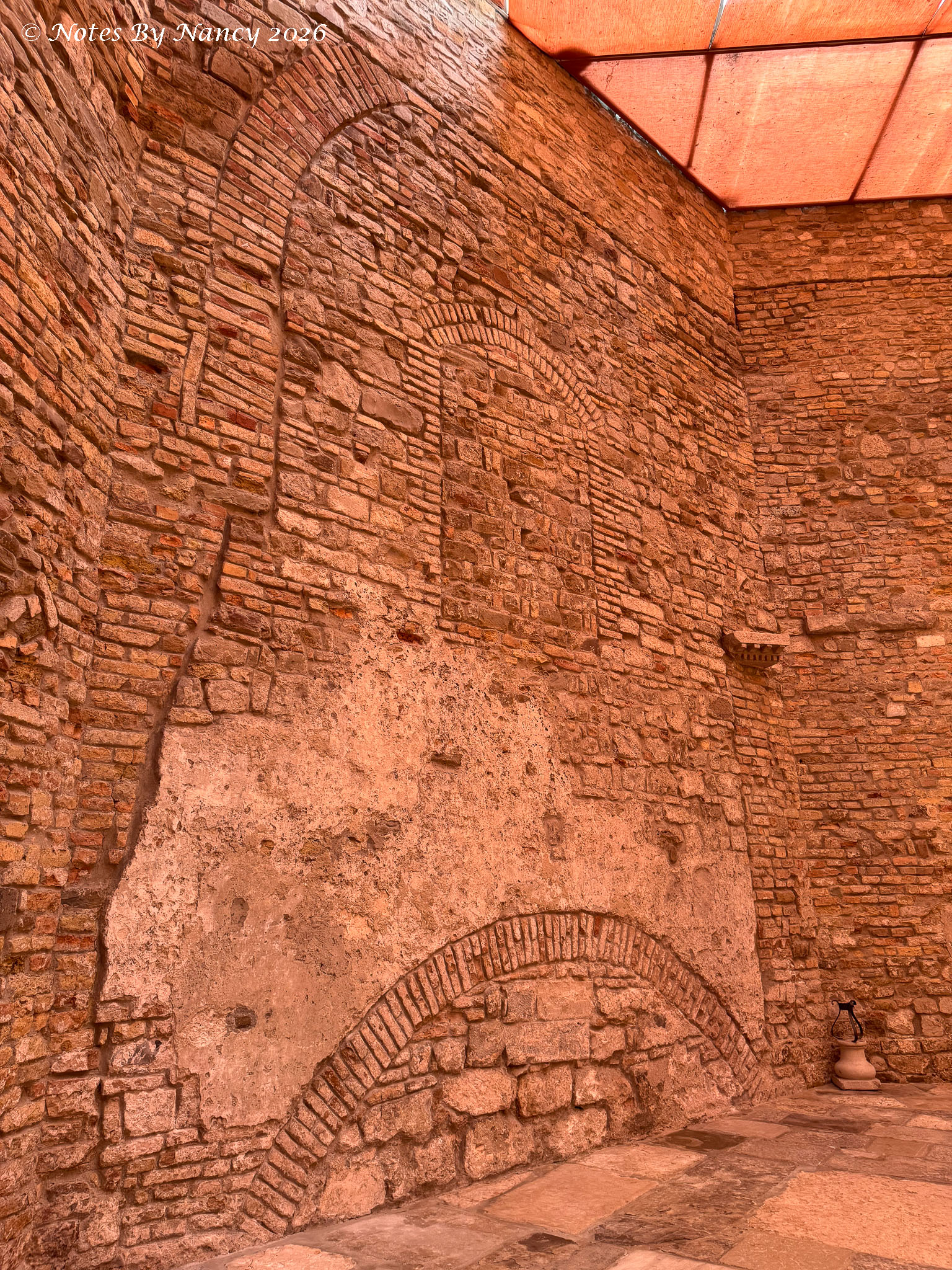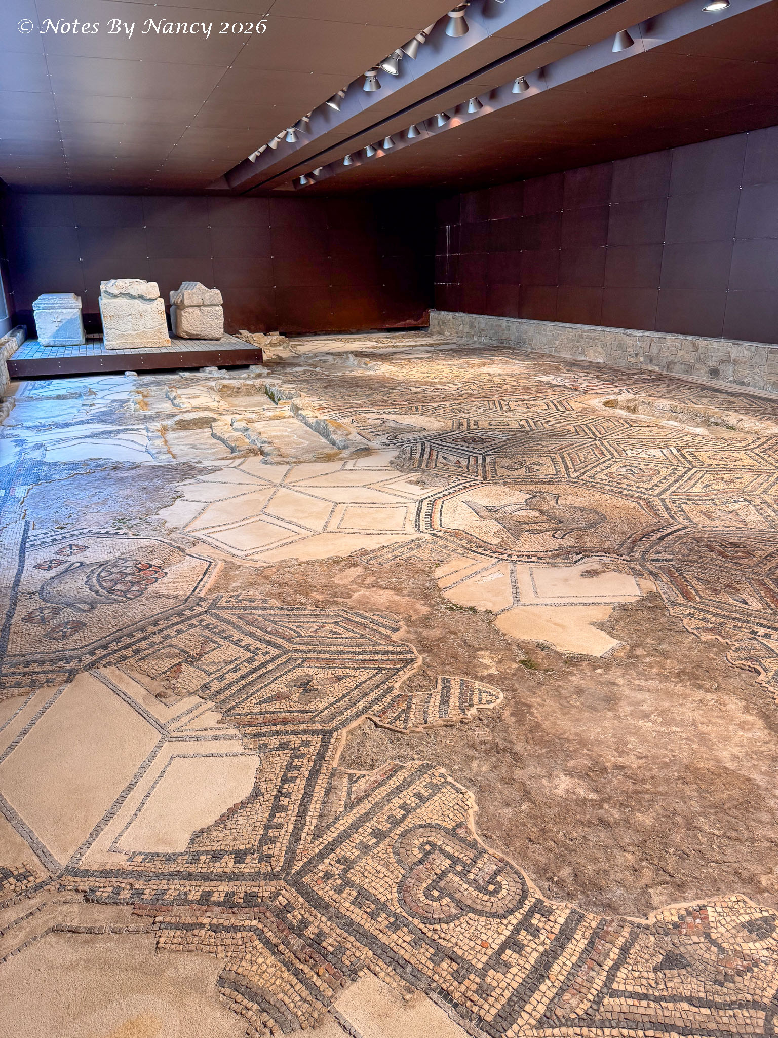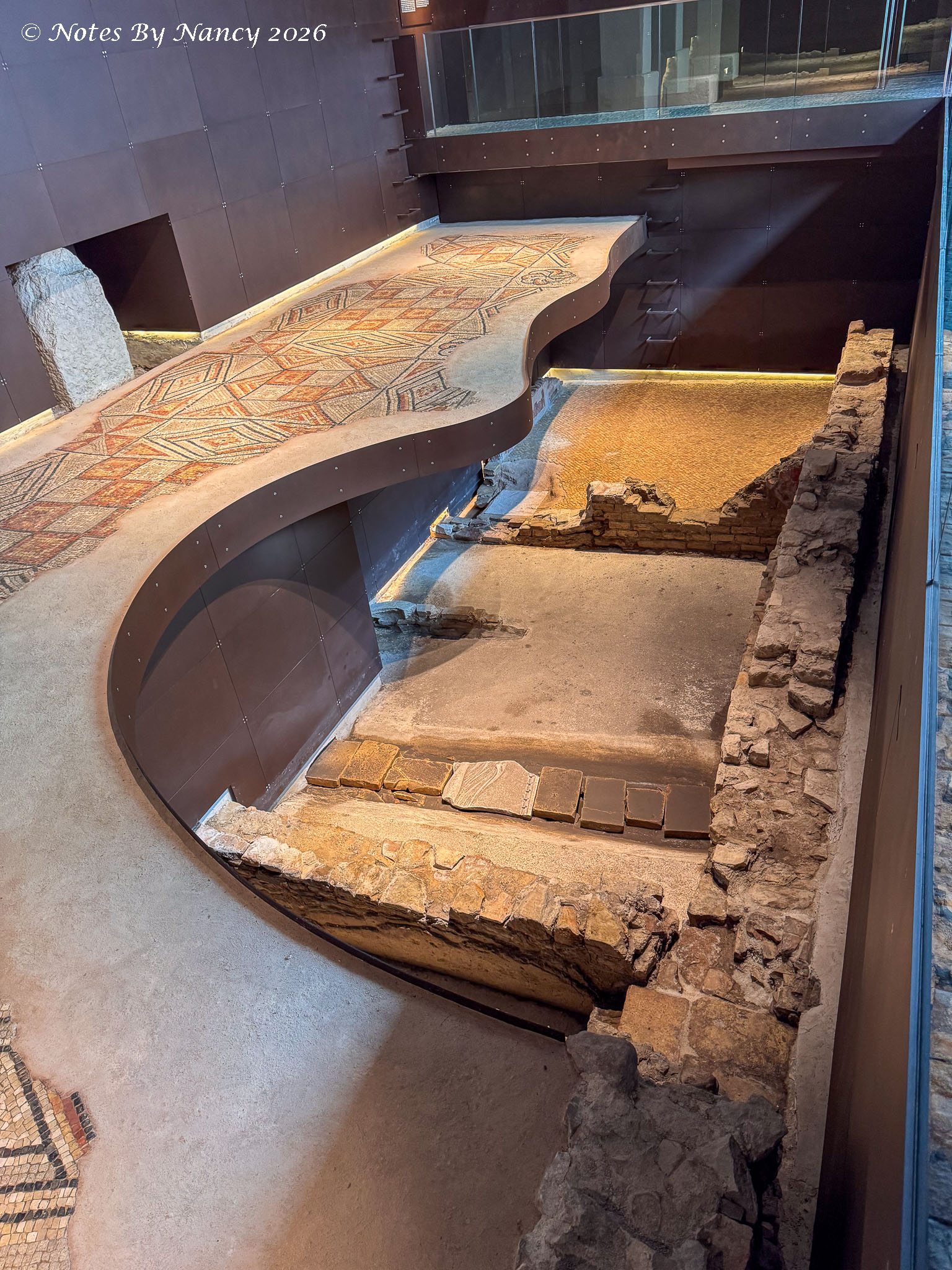 A short distance from the basilica are the excavated remains of the Bishop’s Palace (4th-5th Century) which was built upon the foundations of an earlier house from the 1st-2nd Centuries. The displays and signage explaining the layers of the excavations and the exquisite mosaics are very well done. Not technically part of the basilica, this part of the archaeological museum is known as the Domus and Episcopal Palace.