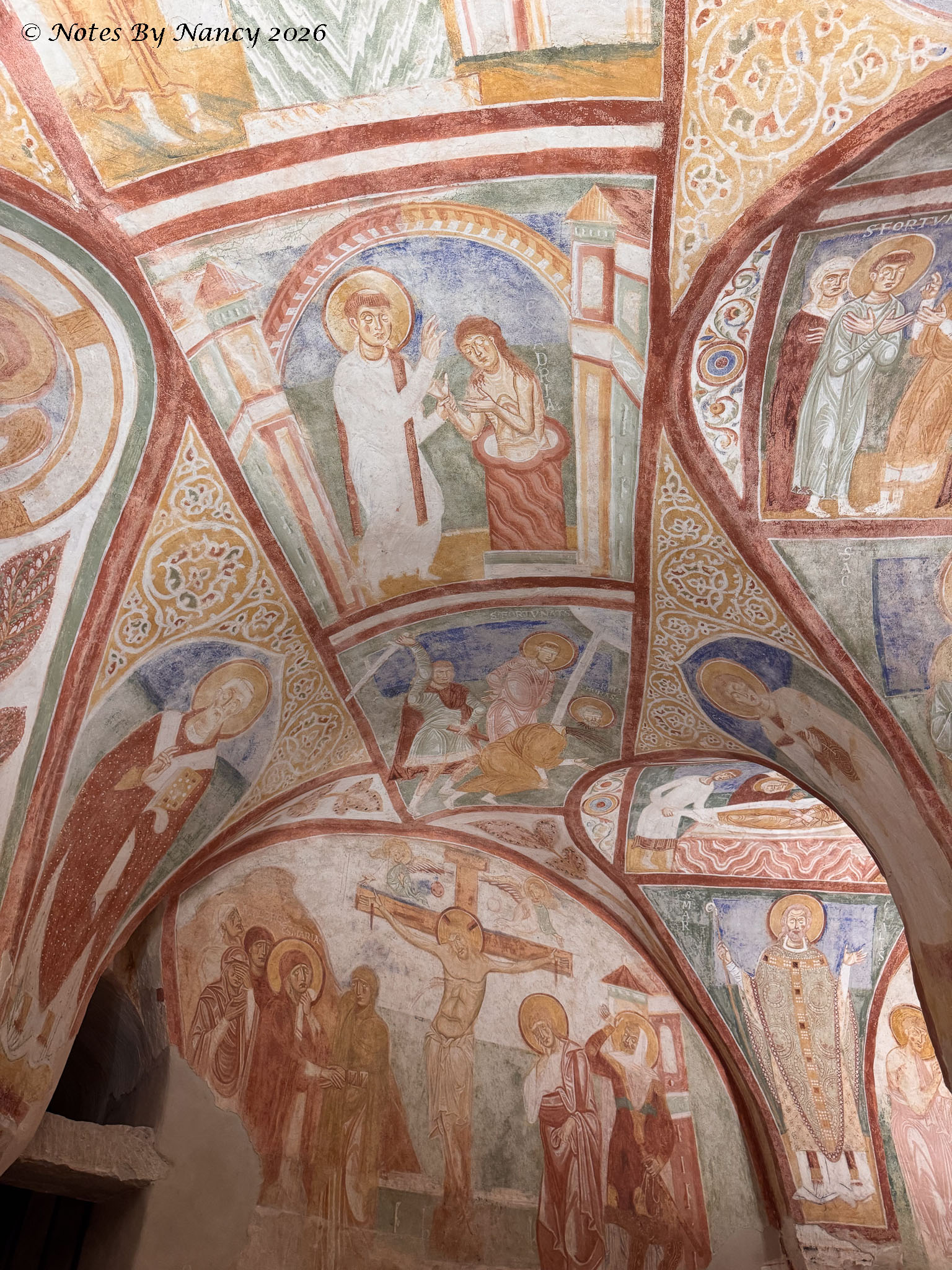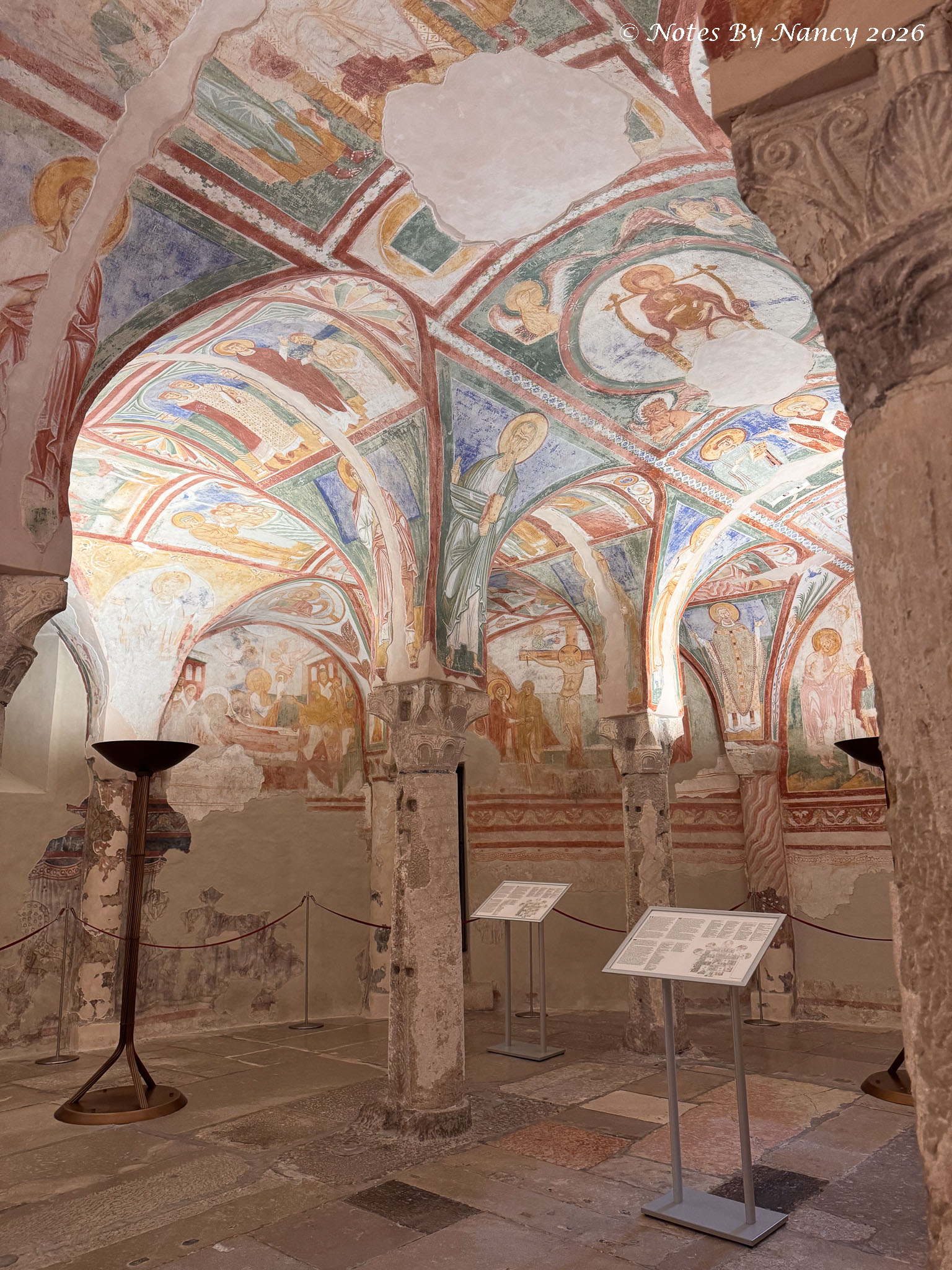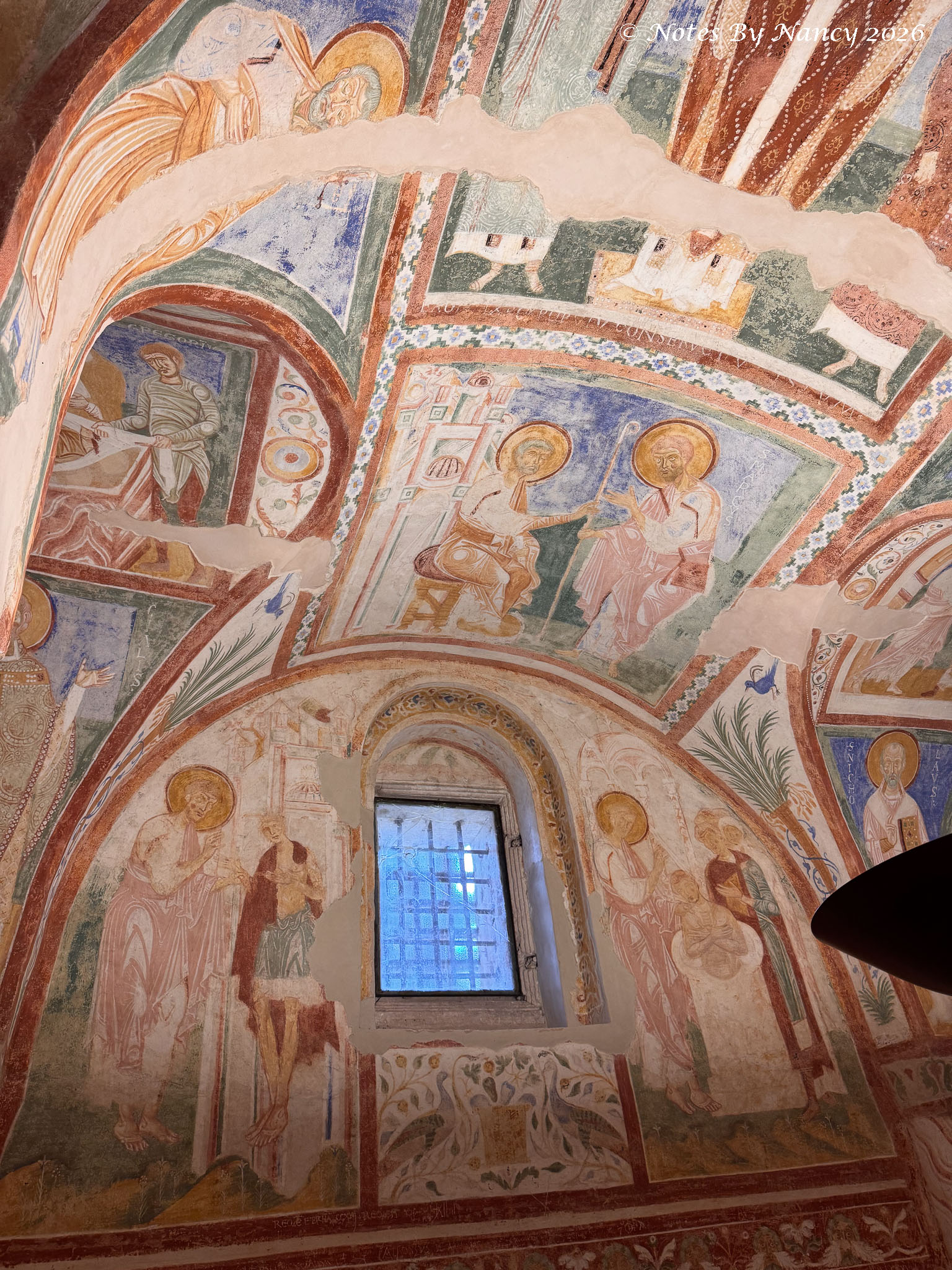 With mosaics and frescoes from the 4th century and later, it is truly a treasure to behold. I had no idea of its full history when we selected it as a stop along the way. It is off the main route – one of those places where you have to be going there to get there, I think! Although we encountered some heavier rain during this stop, I was glad we went. We only spent about an hour there, but I could see spending a whole day there exploring the town and its layers of history.