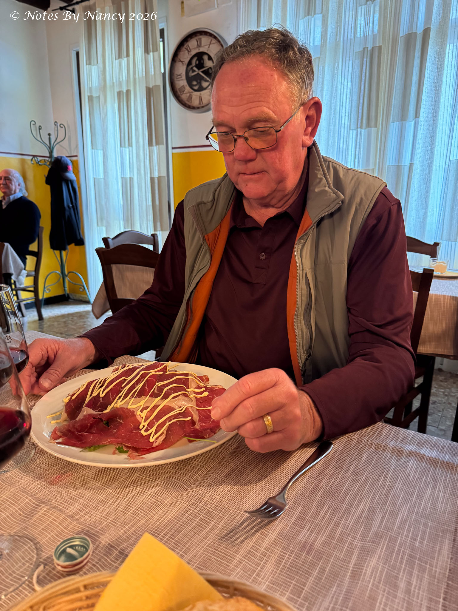 The only drawback to not having Nenad with us – we don’t speak Italian and the wait staff at the restaurant, Osteria Trattoria Ai Ciclisti (Restaurant to the Cyclists), spoke no or limited English! But, we still managed to order wonderful food and wine (thanks to Google Translate).