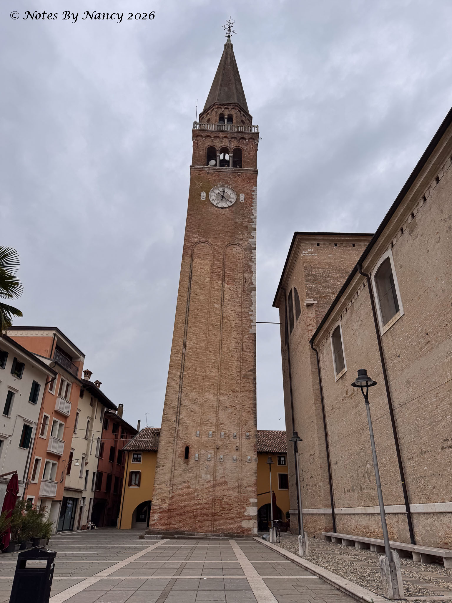 Portogruaro – Duomo and Bell Tower from Via Roma Bridge (left); Bell Tower from Piazza Duomo (right)