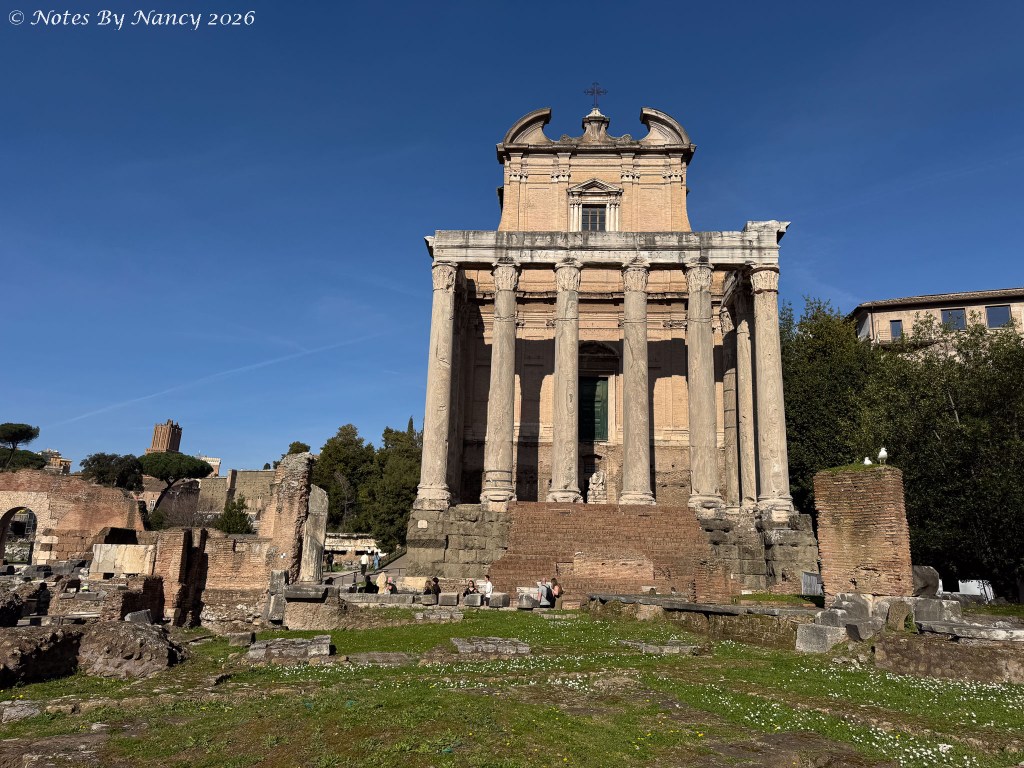 The Temple of Antoninus and Faustina – constructed by Emperor Antoninus Pius in 141 AD to honor his late wife, Faustina.