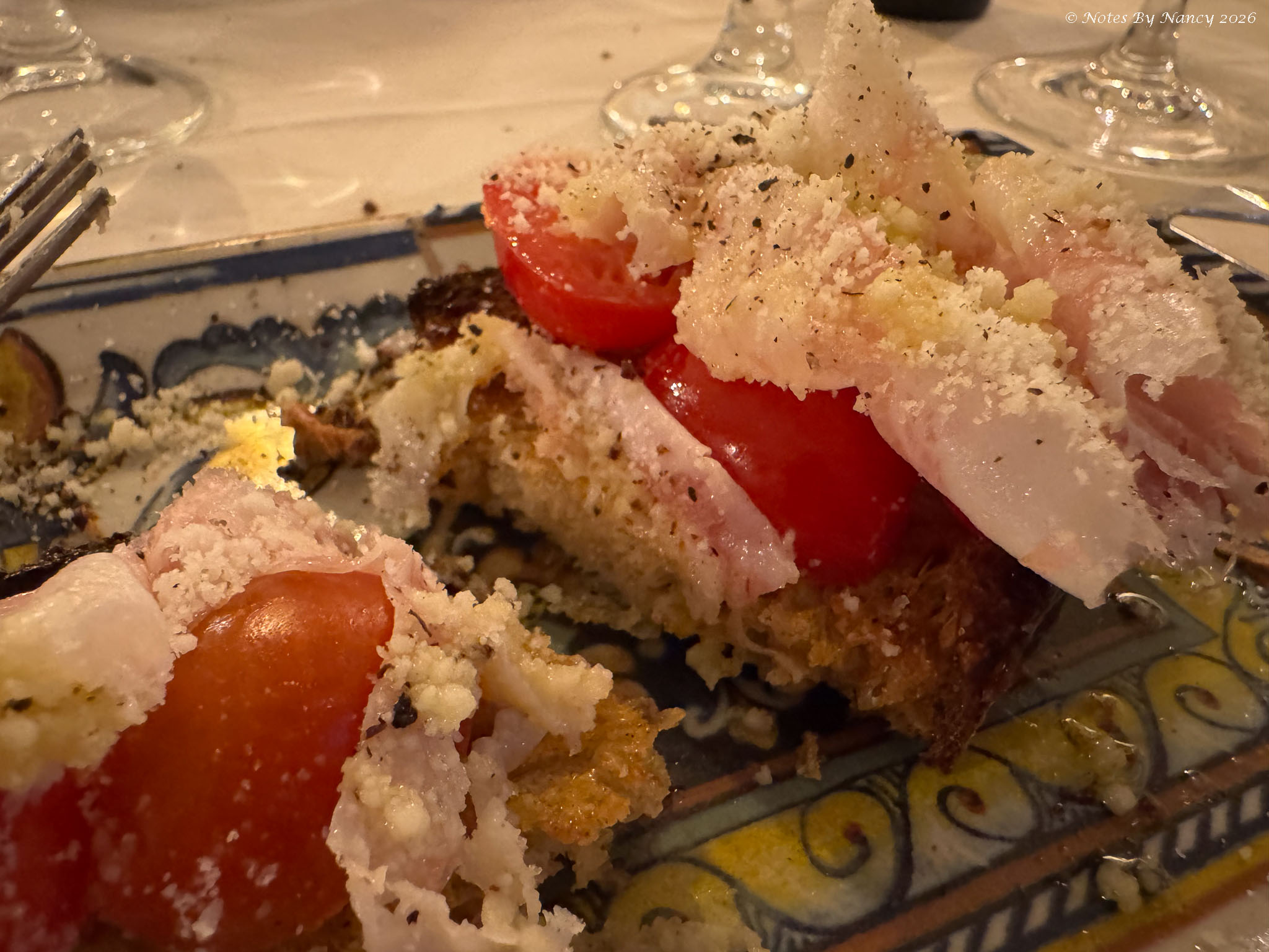 Finally, back at our hotel after a very full day, we were recommended a nearby restaurant (maybe 3 minutes walking) by Flavio which we decided to try out. The young waiter had hardly any accent when speaking English. He said his English was so good because he played online video games! Anyway, the food and wine that he recommended was great – I found out I actually like raw tomatoes when the bruschetta was delivered – at least I liked these tomatoes! We got dessert, too, and were totally stuffed at the end of the meal.