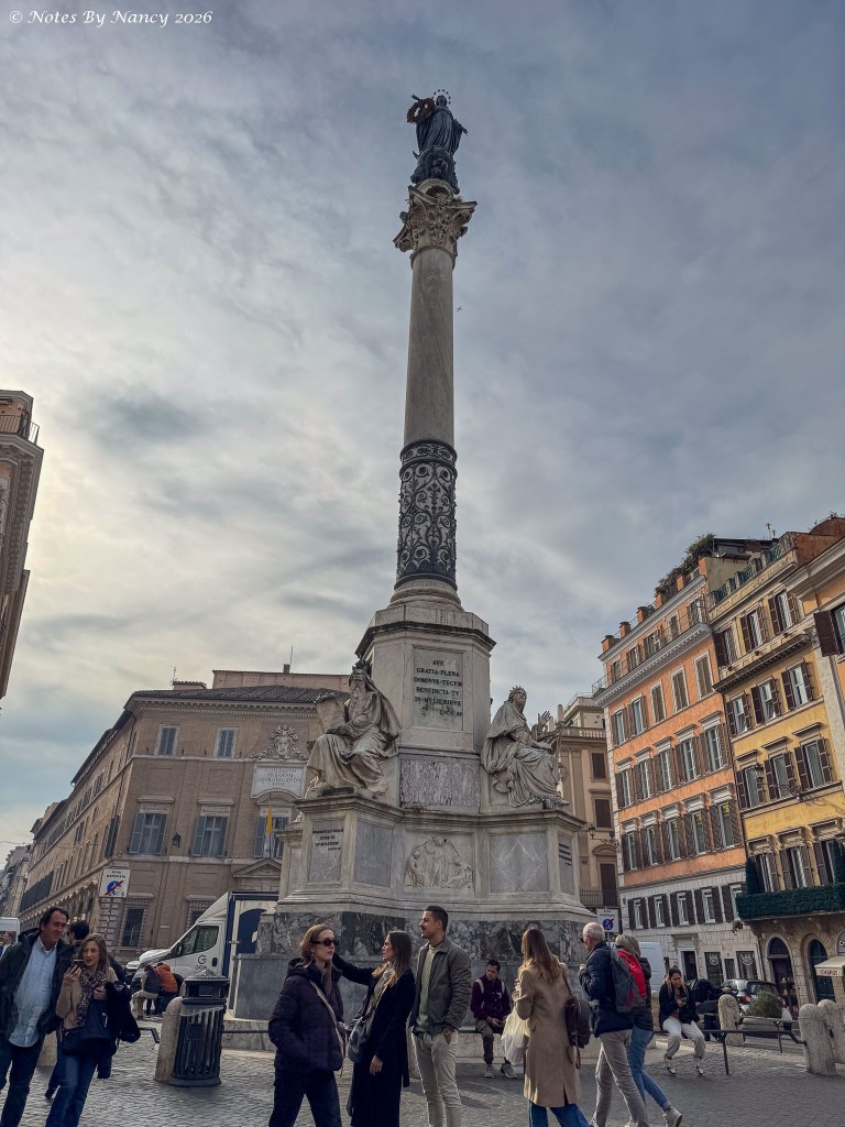 A couple of blocks away in the adjoining Piazza Mignanelli is the 19th-century Column of the Immaculate Conception with a bronze statue of Mary atop an ancient Corinthian column and statues of Moses, King David, Isaiah, and Ezekiel at the base – each of whom predicted the Virgin Birth.