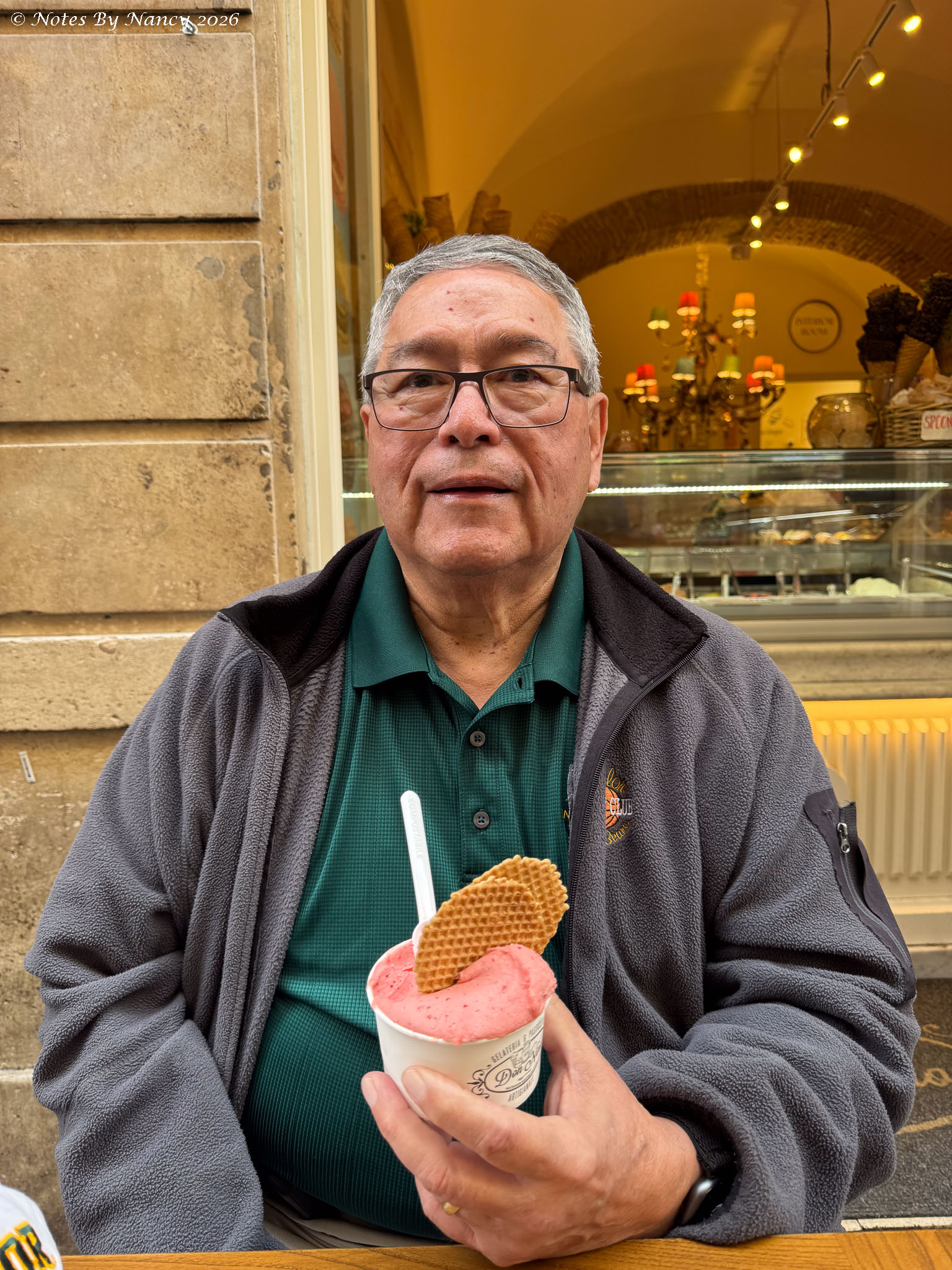 Instead of waiting in the queue to throw our money away, we donated towards the local economy in the form of a strawberry gelato and pistachio cannoli purchase! Yes, I’d already taken a yummy bite of the cannoli!