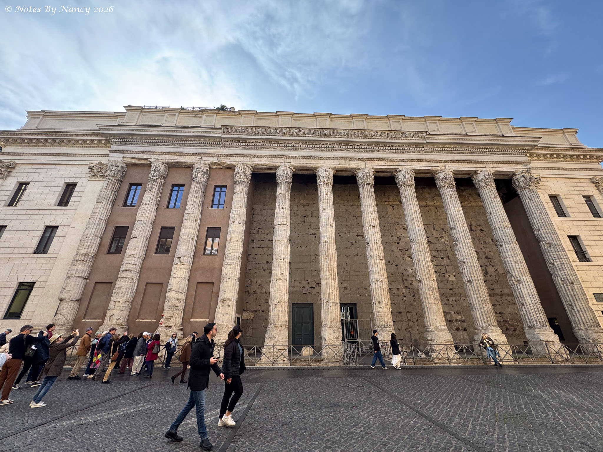 The group then made our way towards another iconic ancient Roman building. Along the way, we passed the current Rome stock exchange. The façade with its 11 Corinthian columns was the Temple of Hadrian from 145 AD. Yes! Nearly 1,900 years ago!
