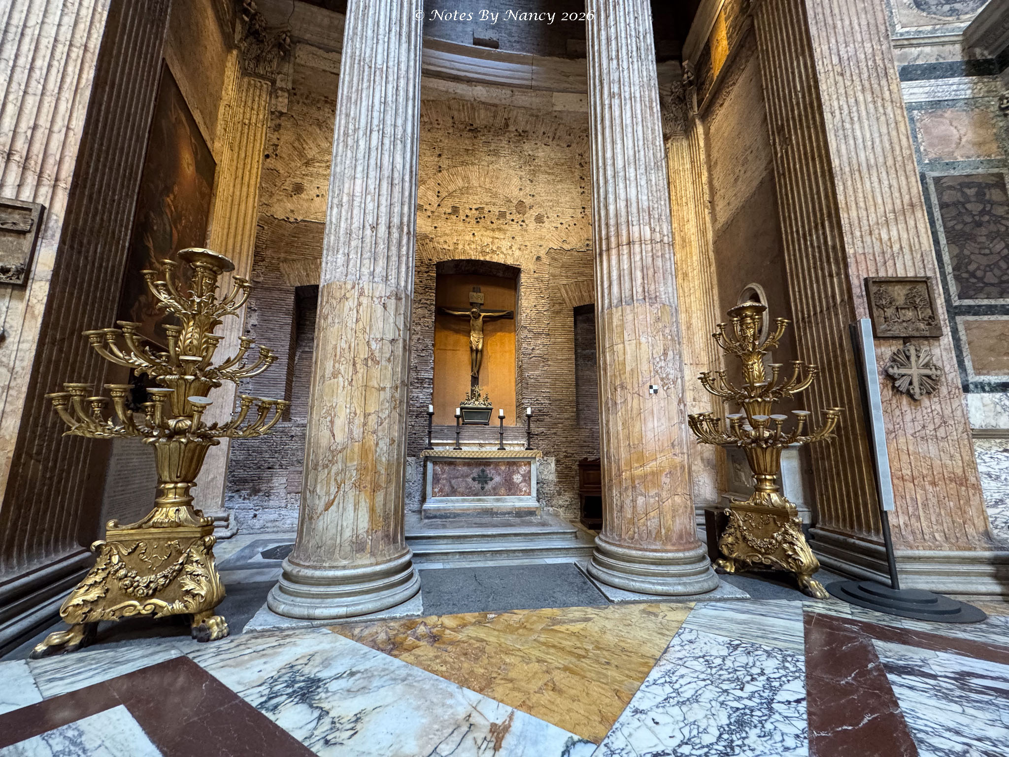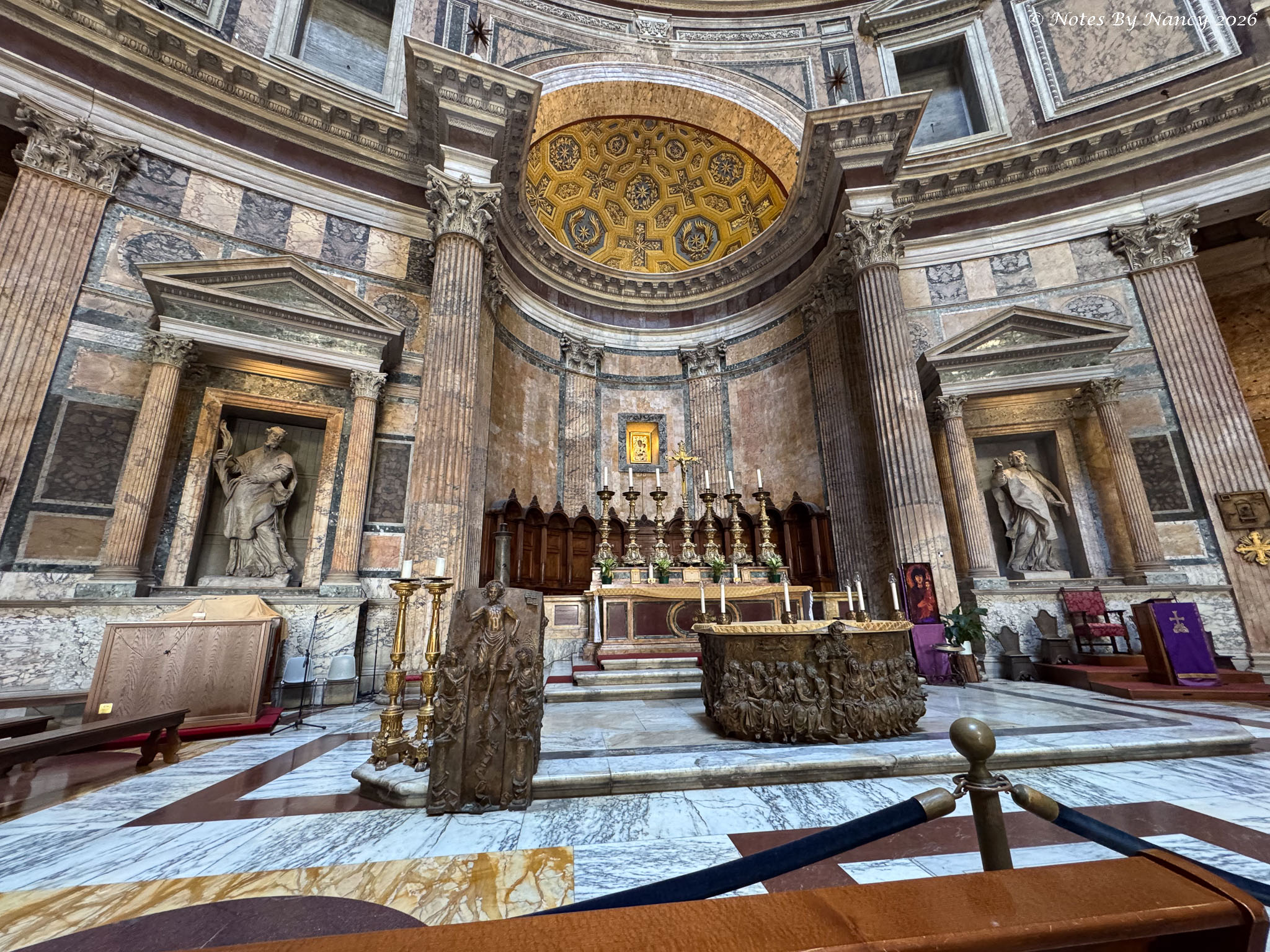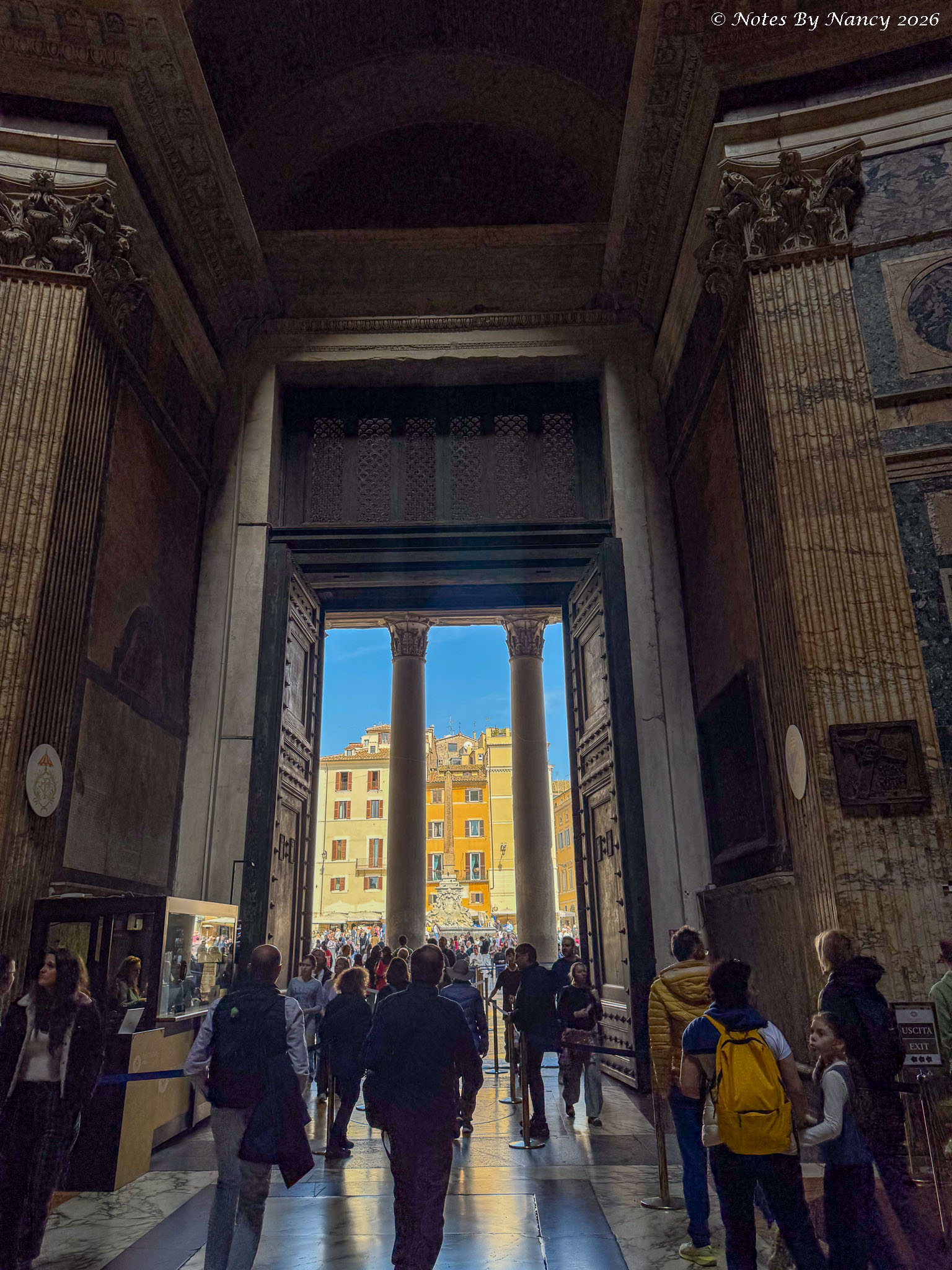 As we maneuvered along the narrow alley dodging delivery vans and small cars, another piazza opened before us with the 2nd-century architectural wonder we were seeking looming beyond – The Pantheon. Tickets (5 Euros) are required and entries are timed.