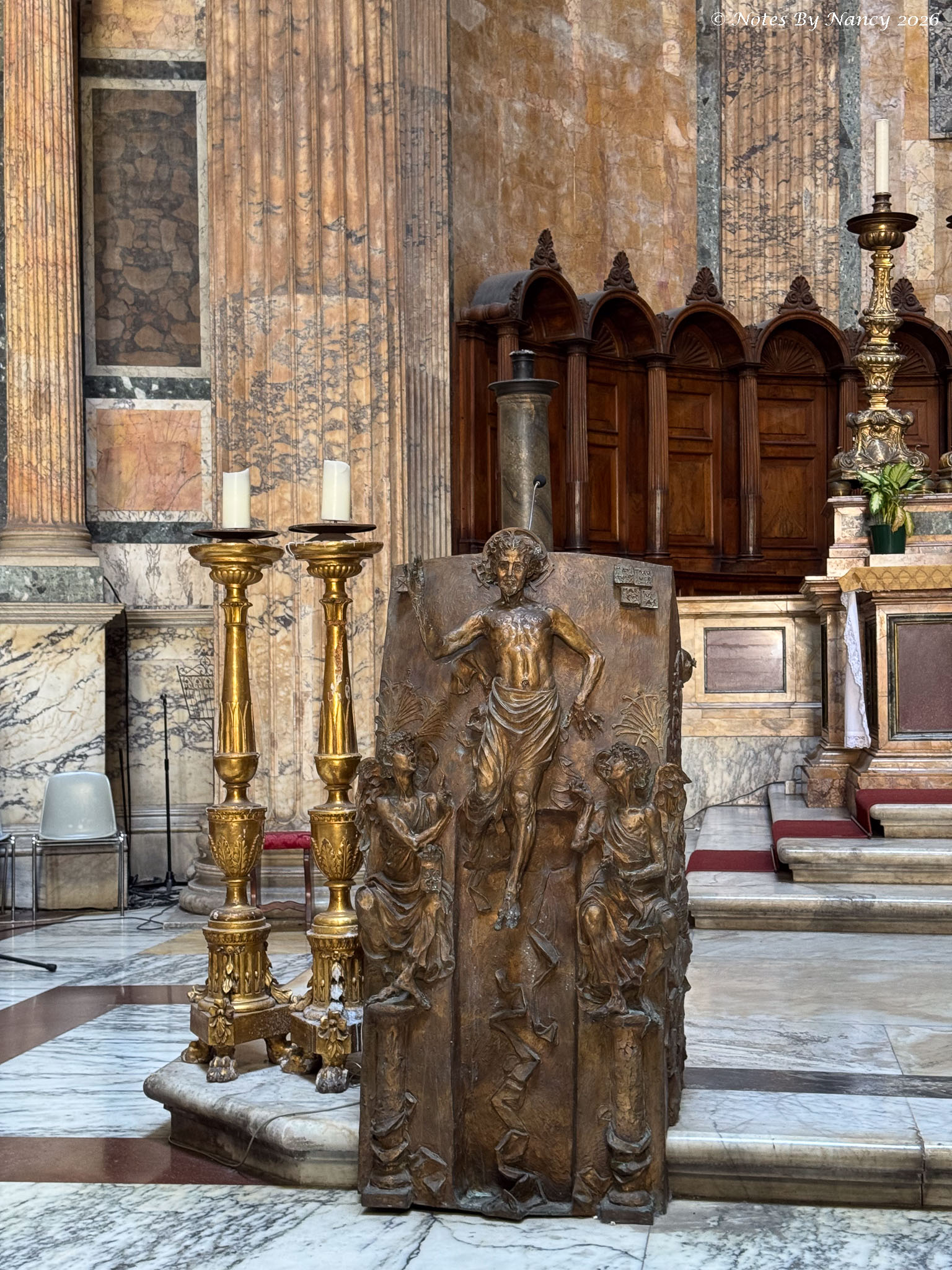 You will note that Moses appears to have horns. Per Google’s AI Overview: Michelangelo’s “Moses” (c. 1513–1515) is a famous marble sculpture located in Rome’s San Pietro in Vincoli church. The horns stem from a Latin mistranslation of Exodus 34:29, which described Moses’ face as “horned” (“cornuta”) rather than “radiant” or “shining” after descending from Mount Sinai. Michelangelo, following medieval tradition, interpreted this passage literally in his sculpture.