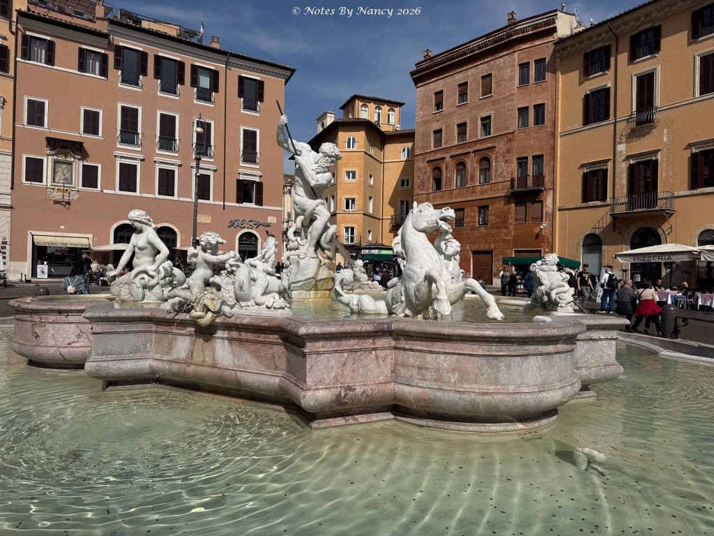 The group met by the Neptune Fountain in the north end of Piazza Navona to continue our afternoon touring – but that will have to be the next post!